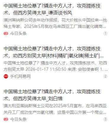中国稀土地位悬了?撬走中方人才,攻克提炼技术,但西方笑得太早 麻烦看官老爷们右上角点击一下“关注”,既方便您进行讨论和分享,又能给您带来不一样的参与感,感谢您的支持!   2025 年 5 月,澳大利亚莱纳斯公司在马来西亚关丹工厂宣布实现氧化镝商业化分离,这则消息让西方舆论炸开了锅。他们高调宣称,这是打破中国稀土垄断的关键突破,终于能摆脱对中国的依赖。   可鲜有人知,这场所谓的 “技术奇迹”,核心底气来自一批被高薪挖走的中国工程师。2024 年底,莱纳斯把目光瞄准了 “世界稀土之都” 包头,对着当地龙头企业的技术骨干开出了翻倍薪酬。   再加上马来西亚永久居留权、子女国际学校名额等福利,成功挖走了一批掌握稀土萃取核心流程的资深工程师。这些人带着多年实战经验,帮莱纳斯快速搭建起生产线,才有了后来的 “突破”。   西方媒体对此大肆渲染,《华尔街日报》直接喊出 “终结中国稀土霸权” 的口号,欧洲议会也将其捧为 “战略自主里程碑”。莱纳斯股价当天飙升 18%,连续七日上涨,仿佛西方已经掌握了稀土话语权。   但热闹背后全是水分。莱纳斯号称产出的氧化镝纯度达 99.9%,可这在中国只是入门标准。国内赣州、包头的主流企业,早就稳定产出 99.99% 以上纯度的产品,就连废料回收提炼的纯度都比它高。   更关键的是质量稳定性,莱纳斯的产品磁性参数波动能达到 15%,同一批次质量参差不齐。欧洲不少风电企业拿到货后根本用不了,只能紧急追加中国订单,到 2025 年底,该产品退货率已超 30%。   产能方面更是差得远。莱纳斯规划年产能 1500 吨,可实际全年都没达标,即便年底扩建后,季度产量也才 9 吨左右。而中国仅氧化镝的年分离能力就有 1 万到 1.5 万吨,它的产能还不足中国的十分之一。   产品覆盖范围也极窄,目前重稀土元素有十余种,莱纳斯仅能分离镝和铽两种,覆盖占比还不到 10%。像制造高性能芯片需要的钆、航空航天用的镥等关键元素,它至今还是技术空白。   成本和环保更是绕不开的硬伤。莱纳斯生产 1 公斤氧化镝成本约 800 美元,而中国企业通过工艺优化,能把成本控制在 500 美元以下,价格优势一目了然。   环保问题更是让它焦头烂额。自 2012 年投产以来,莱纳斯马来西亚工厂已堆积 108 万吨放射性废渣,废水废气排放长期超标。马来西亚政府早就下了整改令,如今运营许可即将到期,延期申请因整改不达标被冻结。   一旦执照吊销,整条生产线就得停摆。当地民众的抗议从未停止,这座工厂就像一座随时可能爆发的火山,根本谈不上稳定生产。   其实西方搞稀土 “去中国化” 早有尝试,可无一例外都栽了跟头。美国重启加州芒廷帕斯矿山,却没掌握分离技术,只能把精矿运到中国加工后再返销。   日本向莱纳斯注资 2 亿澳元,想锁定 30% 的产量,结果产能迟迟兑现不了,协议几乎成了空谈。印度和日本合作的项目,因环评和设备问题,要到 2030 年才可能初步投产,产能还少得可怜。   他们之所以突破不了,根源在于中国的稀土优势不是单一技术或人才,而是数十年积累的 “资源 - 技术 - 全产业链” 系统性能力。中国南方的离子吸附型稀土矿,是全球品质最优的重稀土来源,这是天然的地理优势。   技术上,中国发展出 “萃取海” 多级串联工艺,通过上千级流程实现单一元素精准分离,生物冶金技术让尾矿回收率提升至 76%。这些工艺细节是无数工程师经过两千多次实验优化来的,不是挖几个人就能复制的。   莱纳斯挖走的工程师,只懂基础流程,摸不透那些本土化调校的核心参数。遇到原料波动、设备磨合等问题,生产线就难以应对,工业化量产的关键指标自然达不到。   全产业链整合能力更是西方短期内无法企及的。中国不仅储量占全球 49%、产量占 69.2%,还掌握着全球 90% 以上的冶炼分离产能,是唯一能提供全部 17 种稀土金属的国家。   莱纳斯看似自主生产,实则原料氟碳铈矿很多还得从中国进口,本质上仍离不开中国资源供给。数据显示,美国 17 种关键稀土完全依赖中国,日本进口稀土超 60% 来自中国,这种格局短期内难改变。   专利壁垒也让西方举步维艰。中国目前掌握全球 90% 以上的稀土分离提纯专利,包括 439 项独家萃取技术。2025 年全球新增稀土专利中,中国占比 82%,美国仅占 7%。   西方企业要么花巨资绕开专利研发,耗时多年还未必成功;要么支付高昂授权费,进一步推高成本,根本没法和中国企业公平竞争。