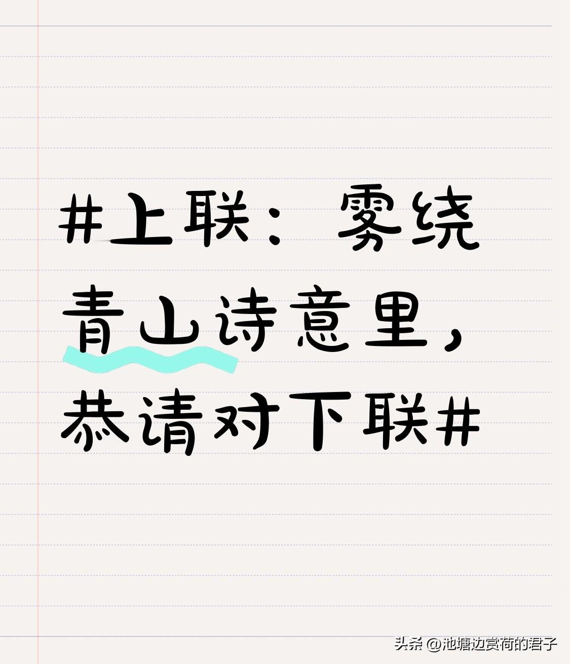 看到“雾绕青山诗意里”这个上联,我脑海中立马浮现出“霞披绿野画情中”这句下联。清晨时分,青山被薄雾环绕,像极了“雾失楼台,月迷津渡”的朦胧之景,诗意满满。而当太阳升起,金色霞光洒在绿野上,庄稼都被染上暖色调,生机勃勃,恰似一幅绝美的画卷。这上下联对仗工整,“雾绕”对“霞披”,“青山”对“绿野”,“诗意里”对“画情中”,完美展现了山水间的诗情画意。