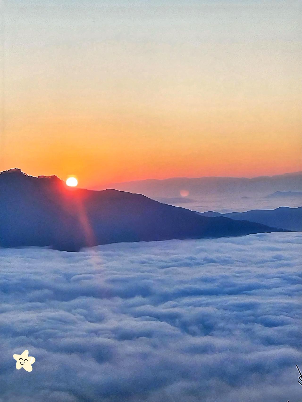 沿着蜿蜒的小径慢慢向上攀登,路边不知名的野花在微风中轻轻摇曳,带着泥土芬芳的气息扑面而来。偶尔传来几声虫鸣,仿佛是夜晚的小夜曲,为这场日出之约增添了几分神秘的氛围。 越往高处走,视野越发开阔。远方连绵的山峦在夜色中犹如沉睡的巨兽,轮廓隐隐约约,让人不禁对即将到来的日出充满了期待。终于,在一处视野绝佳的观景台上停住了脚步,静静地等待着。 天边开始泛起了一丝鱼肚白,那白色如同画笔轻轻勾勒,逐渐晕染开来。紧接着,一抹淡淡的橙红涌现,像是害羞少女脸颊的红晕。随着时间的推移,橙红色越来越浓,如同燃烧的火焰在天边蔓延。 突然,一个小小的、红彤彤的圆球从山峦的尽头缓缓升起,那光芒起初并不刺眼,温柔地洒在大地之上。瞬间,整个世界都被点亮了,山峦、树木、花草都被镀上了一层金色的光辉。阳光穿透了晨雾,形成一道道美丽的光柱,如梦如幻。 站在这山顶,沐浴着温暖的阳光,感受着微风的轻抚,心中满是对家乡这绝美日出的赞叹。邦东乡的日出,宛如一场大自然精心编排的演出,每一个瞬间都让人陶醉,每一个画面都值得永远珍藏。