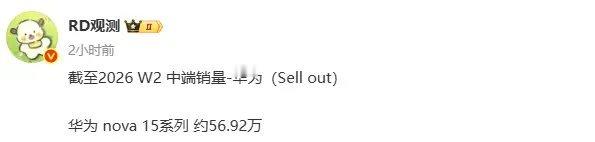 【曝华为nova15出货量超56万部,原生鸿蒙装机破四千万】博主“RD观测”