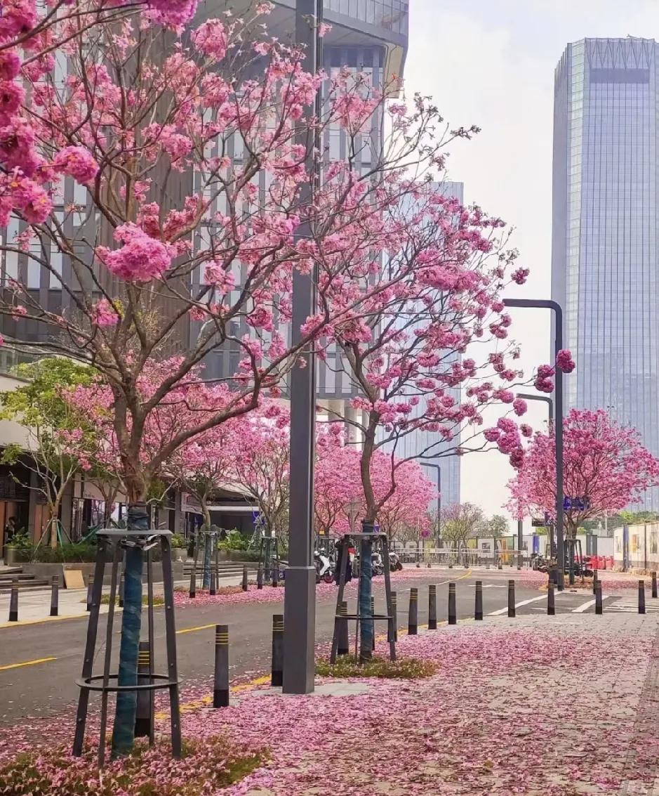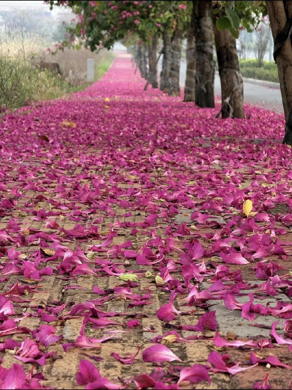 看吧。 这就是南方的冬天。 路上一片五彩斑斓的粉。 勤劳的环卫阿姨的扫帚。 扫帚轻盈而过,怕也是留阵阵香。 想来,这就是北国冬天十里冰封,一片晶莹剔透。 南方的冬天,十里缤纷鸟语花香,一阵飘香,你们觉得呢?