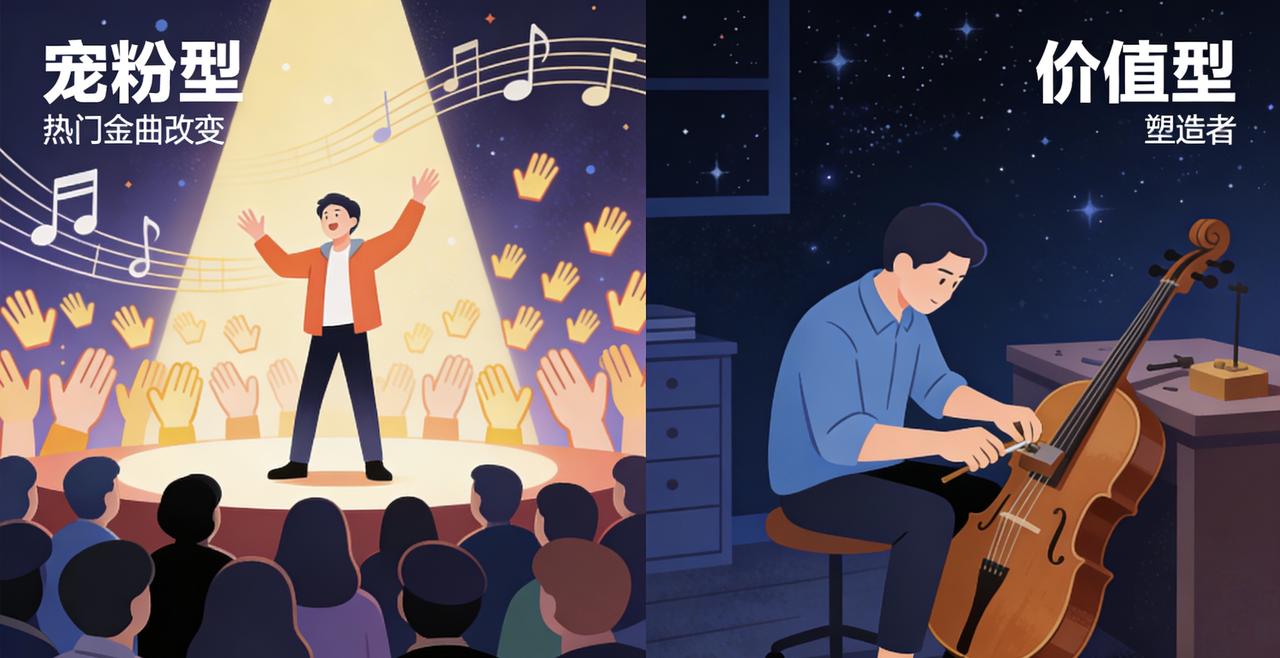 音乐家有两个:一个为掌声加演,一个为内心谱曲 他登上舞台前,总会听到一个声音: “别弹那些没人懂的奏鸣曲了,观众只爱听流行改编。” 聚光灯亮起时,他微笑着向欢呼的人群鞠躬, 然后坐下,弹起了肖邦的夜曲——那是三年前第一次让他落泪的旋律。 聚光灯打在舞台中央,他站在光束边缘的暗处,能听见自己平稳的呼吸,也能听见另一种声音,粘稠、熟稔,几乎成了每次登场前的背景音: “别弹那些复杂的古典奏鸣曲了,太‘高冷’,数据不会好看。改编那几首热榜上的流行金曲,加点炫技段落,观众就爱这个。” 这声音并非来自某个具体的人,而是无数经验汇成的回响。掌声和欢呼从观众席涌来,炽热、明确,带着对某种“确定愉悦”的期待。他能分辨出其中潜藏的渴望:是想要一段耳熟能详的旋律被华彩装饰,是渴望一次无需费力理解的感官满足。 他走到光下,向台下鞠躬,微笑无可挑剔。目光扫过前排兴奋举着手机的面孔,也掠过更远处,那些在光影变幻中神色不甚清晰的身影。他坐定,指尖轻触微凉的琴键。 琴音流泻而出。不是预料中的热单变奏,而是肖邦的《升c小调夜曲》。第一个音符落下,整个音乐厅的空气似乎沉淀了几分。这是一首没有宏大叙事、拒绝炫技取宠的曲子,旋律朴素如夜露,却蜿蜒进入记忆最深的褶皱。三年前某个同样寂静的深夜,第一次完整弹奏它时,他曾猝不及防地泪流满面。那一刻,音乐不是武器,不是商品,只是一面无比清澈的镜子,让他照见了自己都未曾细察的某处灵魂的质地。 弹奏间,他偶尔抬眼。前排仍有人举着手机,但有些人的身体姿态已悄然改变,从预备“捕获精彩片段”的紧绷,转为一种更松弛的沉浸。更远处,那些原本模糊的面容,在流淌的乐音中似乎清晰起来,有人闭目,有人眼神望向虚空某处。他知道,并非所有人都会立刻“听懂”肖邦,但此刻的连接,无关“懂”,而关乎“感受”——一种更为私密、也更为真实的共鸣。 这就是当下内容创作领域里,那条日益凸显的分水岭:一边是“宠粉型”创作者,另一边是“价值型”塑造者。 “宠粉”的本质,是精准的情绪按摩与体验定制。 它基于海量互动数据,描摹用户画像,预判并满足其即时偏好与舒适区期待。无论是“点头式”的内容迎合,还是“盲从式”的互动满足,核心逻辑是“确定性”——提供已知的、被验证的愉悦,降低认知门槛,换取快速的流量反馈与情感依附。这套模式高效、安全,能迅速构建稳固的粉丝基础,如同不断重复的热门金曲改编,总能收获最直接的掌声。 而“价值塑造”则是一场更深层的、有时甚至略显“笨拙”的灵魂工程。 它的出发点不是“用户想要什么”,而是“我有什么不可替代的洞察、美感或思考必须表达”。它不回避智识上的挑战,不迎合情绪上的惰性,敢于呈现复杂、留白甚至令人初感不适的内容。这种创作如同打磨一件内省的乐器,过程可能孤独,节奏可能不被理解,因为它追求的不是瞬时共鸣的强度,而是共鸣的深度与持久度。它相信,真正的连接,始于创作者自身技艺与思考的淬炼,终于用户被启发、被拓展的体验。 当流量焦虑弥漫,“宠粉”成为一条看似清晰的捷径。然而,危险在于,对即时反馈的过度依赖,会无形中侵蚀创作者的表达内核。一味取悦,最终可能模糊了创作者的本来面目,也限制了观众审美与认知的潜在边界。健康的关系,绝非单方面的迎合或仰望,而应是一种基于真实价值输出的平等对话与共同成长。创作者提供经得起时间淬炼的视角与作品,用户则在其中照见自己、获得新知或慰藉,并回馈以有建设性的反馈与支持。 音乐终了,最后一个音符消散在寂静里。短暂的停顿后,掌声再度响起,与开场时相比,少了几分沸腾的狂热,多了几分沉静的暖意。他没有立刻起身,指尖仍感受着琴键的余温。 走下舞台时,耳边似乎又响起了那个熟悉的声音,只是这一次,它显得遥远而模糊。他知道,明天依然会有数据报表,会有市场分析,会有无数“应该怎么做”的建议。但更重要的是,他找回了那个在深夜被肖邦触动的自己——那个相信有些声音,虽不喧嚣,却能在另一个灵魂中激起深沉回响的自己。 在这个注意力转瞬即逝的时代,最奢侈的或许不是被千万人瞬间注视,而是你的作品,能让人在喧嚣退去后,仍愿意安静地倾听自己内心的回音。那些敢于“不语”、专注深耕的创作者,他们的作品或许不会总在趋势榜首,却更可能成为某个人私人精神世界里,一枚无法替代的星辰。