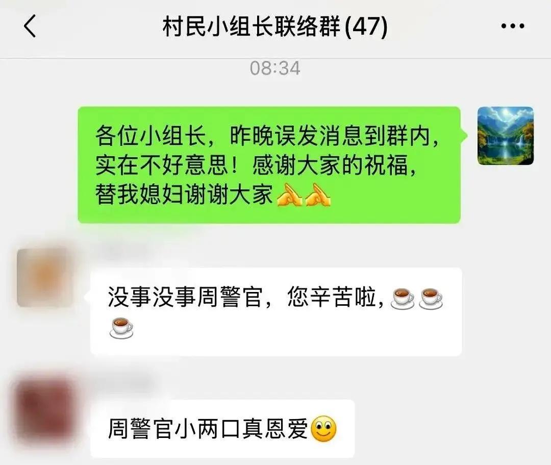 意外的“社死”!凌晨,民警给老婆发消息,却不小心发错到工作群,工作群瞬间“炸锅”! 这一次,身为边境民警的周晓强算是结结实实地体验了一把什么叫“社会性死亡”!事情发生在凌晨一点多,刚处理完紧急警情回来的他,原本满心想着给媳妇补上一条生日祝词,谁承想疲惫之下手指一滑——那条攒了一肚子情话、肉麻兮兮的“小作文”,竟然直接被抛进了那个拥有200多号人的工作大联络群里。 等他反应过来时,想要撤回早已经过了时限,覆水难收。然而,令人始料未及的是,这场尴尬误操作引发的后续连锁反应,却比他预想的要温情太多。沉寂的工作群瞬间沸腾 众所周知,这个群平日里充斥着的都是严肃的防汛通报、禁毒科普这类公文信息,透着一股子冷峻劲儿。但此番,伴随着那条满含深情的话语——“陈老师生日快乐,多谢你操持家中大小事务,两个孩子全仰仗你……”“爱你老婆”这句深情告白蓦地弹窗而出,如一颗石子投入平静湖面,瞬间激起涟漪。群内原本的氛围被打破,整个群的画风在刹那间发生了逆转。 寂静刹那间被打破,村民们的回复似潮水汹涌而至,手机屏幕飞速滚动,满屏皆是滚烫的祝福:“祝陈老师生日快乐!””“周警官的媳妇儿辛苦了!” 更有热心肠的大姐毫不见外,直接在群里发出得体又实在的邀请:“等陈老师得闲,带娃到家里来吃鸡肉稀饭!”待到次日清晨,周晓强睁眼一看手机,昨晚那条试图找补的“不好意思发错了”早已被满屏红彤彤的祝福语顶到了九霄云外,连个影儿都寻不见。他索性也不再尴尬解释,默默将这满屏的温情截了图,转发给了自家媳妇。 妻子看后回了他一句极重的话:“嫁给你这么多年,就数这个生日最暖。”为何村民们的反应如此热烈? 追本溯源,皆因周晓强于云南保山边境一线,脚踏实地、扎扎实实地坚守了足足11年之久,将岁月与心血都倾付于此。无论是化解邻里纠纷、日夜巡逻防控,还是帮着老乡找牛寻羊,他早已用脚步丈量了这里的每一寸土地,活成了乡亲们口中信得过的“自家人”。 再看他的妻子呢?多年来,此人形单影只地坚守于大后方,含辛茹苦、不辞辛劳地抚育两个孩子,见证他们从牙牙学语到逐渐长大,岁月在其身上留下了坚韧的痕迹。丈夫半夜三更出警是家常便饭,她有了委屈只能往肚子里咽,生了病也不敢轻易声张。 恰恰是这次无心插柳的“乌龙事件”,让全村男女老少恍然大悟:原来在坚固的边境防线身后,还有这样一位默默用柔肩扛起家庭重担的女人。这才是最触动人心的地方 在当下的舆论场中,我们习惯了把赞美毫不吝啬地献给冲在一线的“逆行者”,却往往容易忽略那些在后方默默支撑的“留守者”。 在周警官那条略显笨拙的长篇独白里,找不到什么华丽辞藻的堆砌,唯独那层意思最真挚——“家里有你,我才安心”。正是这份质朴无华,如利箭般精准地射中了无数人的心房,激起情感的涟漪,让人们在心底深处产生了强烈的共鸣。 如今我们看惯了朋友圈里那些精心修饰、完美包装的人设,反过来再看这种真诚到导致“社死”的情感流露,才让人惊觉:这种鲜活温热的人情味,才是比黄金更珍贵的东西。 再严肃、再冰冷的工作联络群,屏幕背后守着的也都是一个个有血有肉的灵魂。无论是那些深夜还在发布任务指令的民警,还是那些瞬间秒回送上祝福的村民,哪一个不是在用尽全力认真生活? 这样的温情场面久违了吗? 所以,请不要只把掌声留给那些冲锋陷阵的身影,也请回头看一眼,那个始终在家中为他留着一盏灯的人。 各位朋友,你们认为这条因“手滑”而发出的消息,算不算得上是今年最温暖的乌龙事件?欢迎在评论区畅所欲言,分享那些曾让你瞬间防线崩塌、感动不已的时刻。