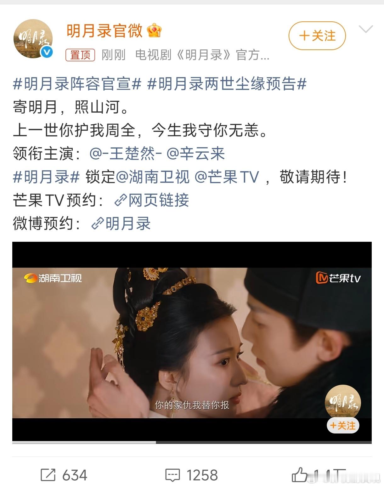 明月录阵容官宣又一部重生剧官宣了!王楚然是一番女主,雁回时大爆辛云来没吃到多少红利,所以还是只能当二番男主