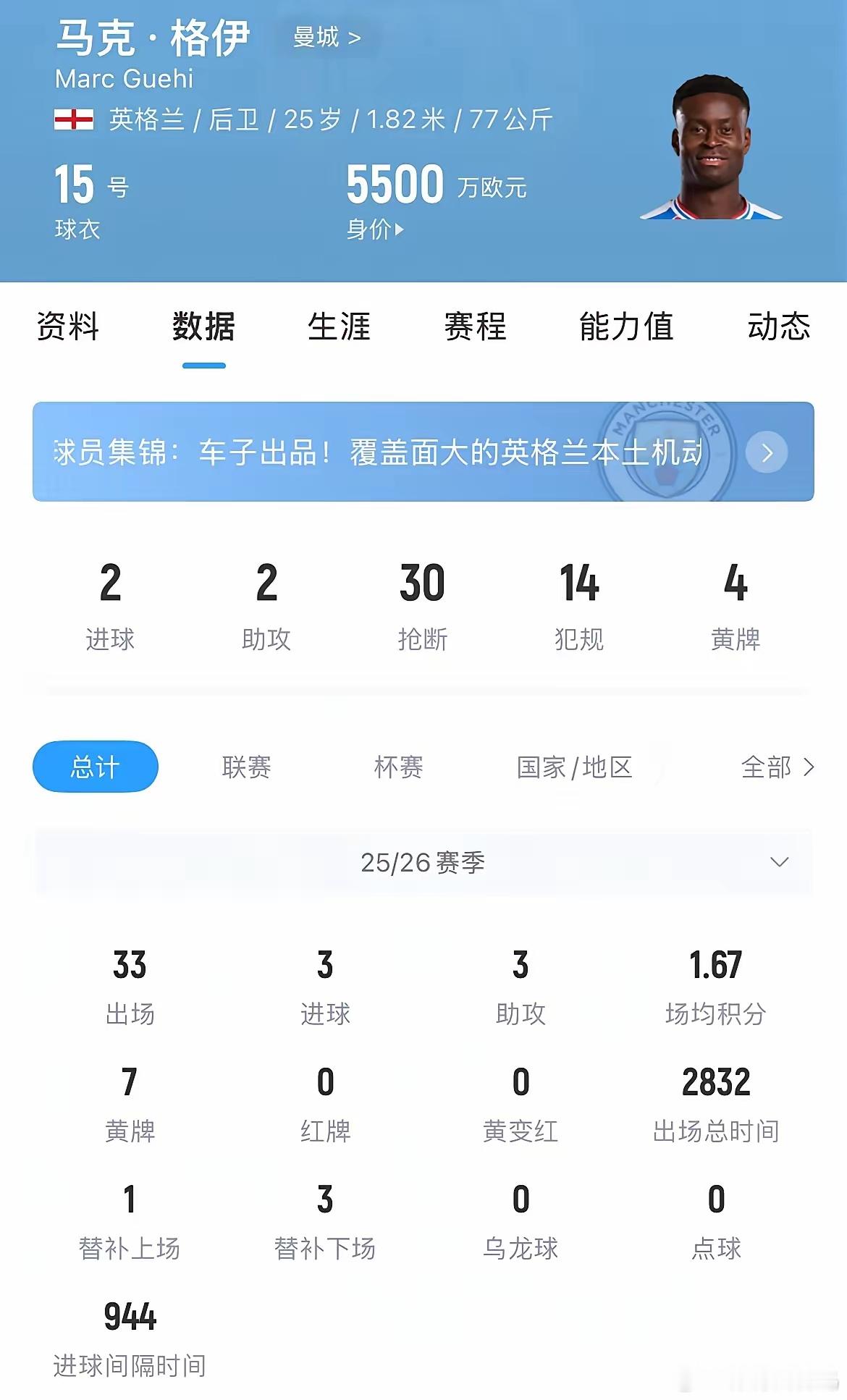 曼城签人,快准狠,对症下药!曼城官方宣布,从水晶宫签下英格兰中卫格伊。总价3000万镑,签约至2031年,身披15号,周薪超30万镑,成为曼城薪水最高的后卫。格伊出自切尔西青训,2021年加盟水晶宫之后,迄今共代表球队出场188次,打进11球,帮助水晶宫夺得2024/25赛季足总杯冠军和2025社区盾。曼城官宣格伊加盟