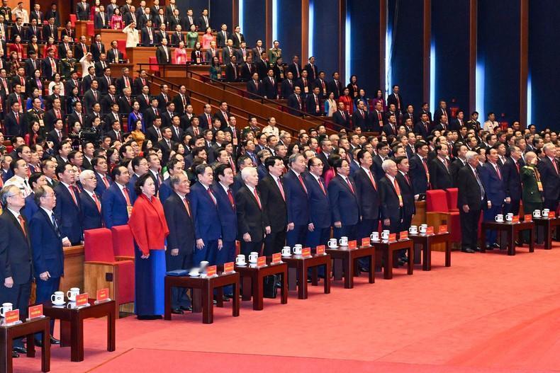 阮氏金银别来无恙!越南召开重要大会,原来的四驾马车农德孟、阮晋勇、张晋创、阮生雄和阮氏金银等悉数出席。阮氏金银身着紫色奥黛,围着红色披肩,全场熠熠生辉。在与苏林握手时,她还轻轻拍了一下苏林,以示鼓励。值得一提的是,阮氏金银是越南第一位女性四驾马车,她的搭档是阮富仲、陈大光(阮春福)和范明政,而且她还是越南国会中越友好议员小组主席。