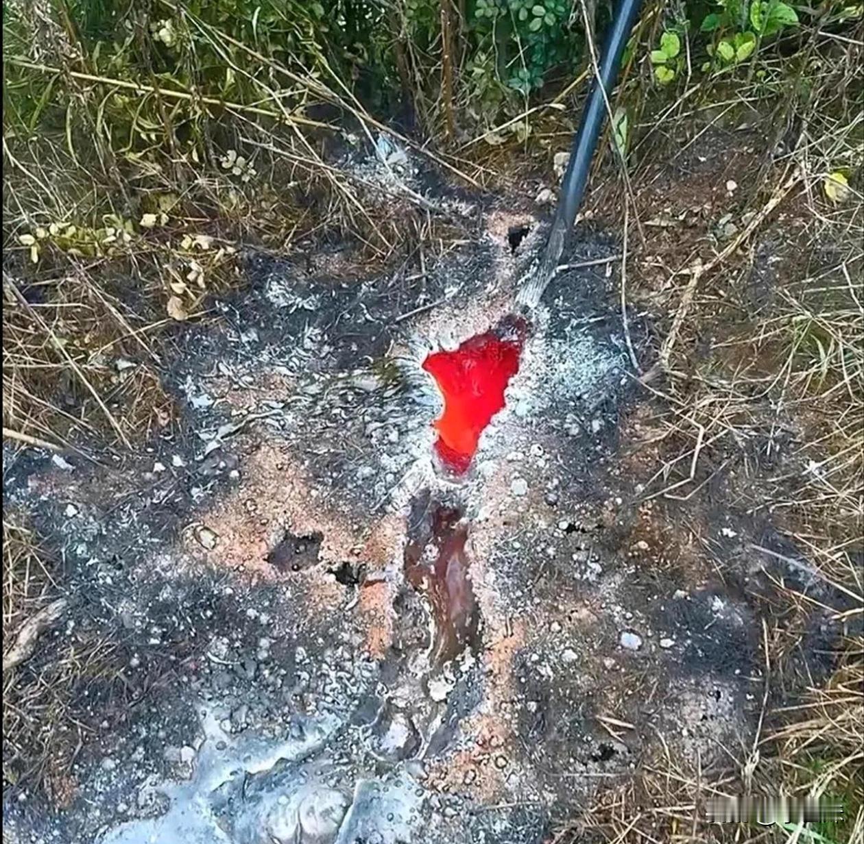 高压电的威力真是吓人啊,水泥都融化了