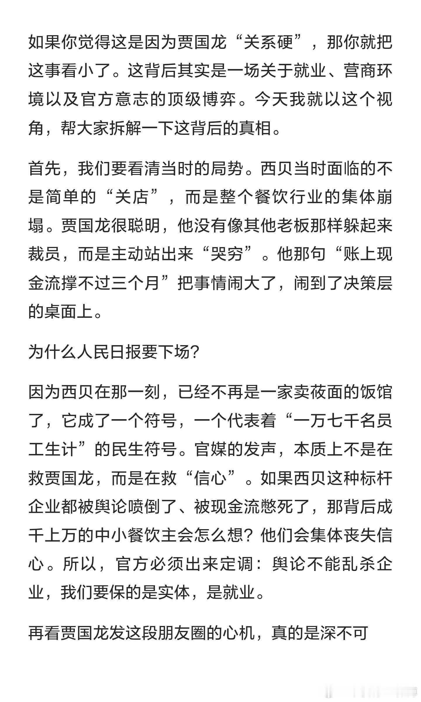 西贝贾国龙发朋友圈宣布赢了!