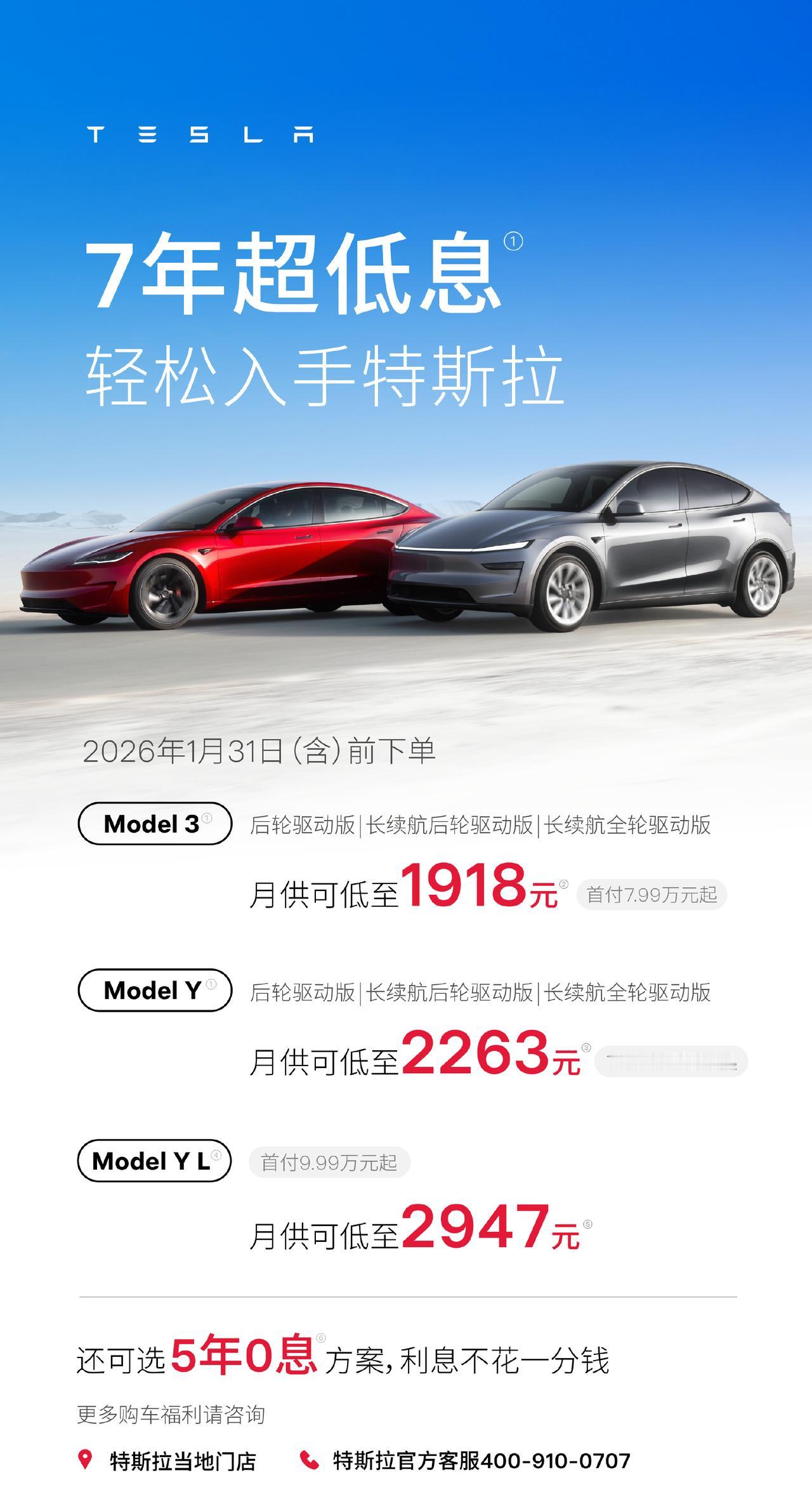 咚咚咚,7年低息,特斯拉、小米、理想都有了,第四家猜一猜。