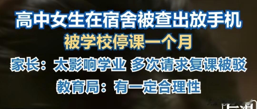高一女生带手机被停课1个月!40多个学生都遭罚?家长急哭:孩子学习咋办! 陕西柞水的宋先生最近愁得睡不着觉,就因为女儿带了个手机去学校,直接被停课一个月! 宋先生的女儿15岁,在柞水中学上高一,家离学校有30分钟车程,平时都在学校住校。 宋先生和老婆早就离婚了,孩子跟着他,他自己在西安上班,没法天天照顾孩子。给女儿配手机,目的就是为了周末能联系着接送,还有给孩子转伙食费,让她自己充反恐。 结果2025年12月17号,宿管在宿舍检查的时候,发现女儿的手机夹在笔记本里,当时手机都没电关机了。 女儿说,之前她一直把手机交给班主任代管,后来班主任不收了,她就放校外商店,这次是找别的班老师也不收,没办法才带回宿舍的。 可学校也没立刻处理,因为当时班主任出差了,一直到2026年1月7号,才通知宋先生把孩子接回家,说要停课一个月。 到1月19号,孩子都在家待了12天了,宋先生找班主任说情,托熟人找校领导,想让孩子早点返校上课,可都被拒绝了。 女儿还跟他说,和她一起因为带手机被处分的有9个同学,整个学校从高一到高三,大概有四十多个学生都因为带手机被停课回家了。 “孩子刚进校的时候排名900多,上次考试都冲到600名了,正进步着呢,这一停一个月,之前的努力不都白费了?”宋先生说,罚孩子打扫卫生、写检讨都行,就是停课太影响学习了。 女孩的班主任说“停课一个月是学校规定”,然后就没有新的回复; 高一年级的组长也说,开学的时候就反复强调过不能带手机。 柞水县教育局,工作人员说,学校的规矩家长都知道,学生违反了就该受罚,这规矩对管理学生也有一定道理,要是改了别的处罚方式,可能还有家长不同意。 你会让你的孩子带手机进学校吗?