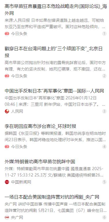 中国真拿出刀子,反而没有一个国家敢上了!我们对日本出重手,结果没想到特朗普不表态,即将访问日本的李在明不表态,即将来华访问的加拿大总理卡尼也不表态,而至于英国,法国,德国通通当没有什么事情发生似的。这说明什么呢?这说明别看G7平时牛气冲天,对我们指手画脚,一旦我们拿出硬手段,各国都知道我们确实不好惹。 麻烦看官老爷们右上角点击一下“关注”,既方便您进行讨论和分享,又能给您带来不一样的参与感,感谢您的支持! 作为长期的 “反华急先锋”,高市早苗的挑衅绝非一时兴起。她不仅多次与 “台独” 势力勾连,率团窜台、接待台湾分裂分子,还在党内安插 “亲台派”,甚至纵容议员参加台湾地区伪庆活动,一系列操作早就暴露了其分裂中国的野心。 她之所以敢如此肆无忌惮,无非是打了两个算盘:一是赌中国还会像过去那样,只停留在外交谴责,反制力度有限;二是盼着美国和 G7 盟友能为她站台,借着阵营对抗的势头给中国施压。 但这次高市早苗彻底失算了,中国直接拿出了真家伙,不再给任何模糊空间。外交上,中国驻日使馆第一时间提出严正交涉,明确驳斥其违反《开罗宣言》《波茨坦公告》等国际文件的错误行径,让日本在国际上颜面尽失。 军事层面,解放军在台海及东海海域开展常态化战备巡航,战机战舰的活动频次显著提升,用实际行动展示捍卫国家主权的坚定决心,让日本感受到了实实在在的军事压力。 经济上的反制更是精准有力,中国商务部发布公告,加强对日本两用物项的出口管制,所有可能助力日本军事发展的物资一律禁止出口。同时还收紧了中重稀土出口许可审查,要知道日本 70% 以上的稀土都来自中国,这一下直接戳中了其产业命脉。 这波组合拳下来,日本经济立刻有了反应。东京股市汽车、电机板块大幅下挫,丰田、本田等巨头股价跌幅超 2%,有智库估算,若稀土管制持续三个月,日本将面临 6600 亿日元的损失。 更有意思的是,原本被高市早苗寄予厚望的盟友们,此刻全都集体沉默了。美国前总统特朗普不仅没表态支持,反而在与高市早苗通话时,建议她不要在台湾问题上挑衅中国,显然不想因为日本的冒进破坏美中贸易关系。 即将访问日本的韩国总统李在明,面对这一敏感议题只表示会冷静观察,优先确保韩国自身利益,压根没提替日本说话的事。而即将来华访问的加拿大总理卡尼,为了不影响双边关系,更是对该事件避而不谈。 至于平时总爱对中国指手画脚的英国、法国、德国等 G7 国家,这次也都装起了哑巴,没有一个站出来替日本说一句硬话。曾经在峰会上 20 次点名中国的 G7,此刻连一句声援都没有,同盟关系显得格外讽刺。 这些国家之所以集体失声,核心原因很简单:谁都不想为日本的政治冒险买单。中国作为全球主要经济体,与 G7 各国都有着深度的经贸联系,他们清楚一旦为日本站台,必然会遭到中方反制,付出巨大的经济代价。 对美国来说,美中贸易关系的稳定关乎其国内经济和选票,没必要为了日本的野心牺牲自身利益;对欧洲国家而言,中国是重要的贸易伙伴,在能源、制造业等领域有着广泛合作,犯不着卷入台海纷争。 就连日本国内,也有不少反对声音。前首相石破茂、鸠山由纪夫等人公开批评高市早苗言论越界,普通民众也担心被绑上军国主义的战车,毕竟历史的教训还历历在目。 这次事件彻底暴露了日本的结构性困境:作为中等国家,却总想借助外部势力挑战大国核心利益,妄图复活军国主义,最终只会陷入孤立无援的境地。高市早苗推动的扩军、修宪、放宽武器出口等动作,早已引发周边国家警惕。 更重要的是,这一战让世界看清了中国捍卫核心利益的决心和实力。台湾问题不是可以讨价还价的筹码,而是碰不得的红线,任何企图分裂中国的行为,都将遭到坚决反制。 过去 G7 总爱抱团施压,动辄拿人权、经贸等问题说三道四,但这次中国真拿出硬手段后,他们的沉默已经说明了一切:所谓的同盟关系,在实实在在的利益面前不堪一击;所谓的霸权逻辑,在绝对的实力和正义面前根本行不通。 这也给其他国家敲响了警钟:不要误判中国捍卫主权的决心,不要低估中国的反制能力。任何试图挑战中国核心利益的行为,最终只会搬起石头砸自己的脚,没有一个国家会为这种冒险行为买单。 中国从不主动惹事,但也绝不怕事。这次对日本的反制,既是对分裂势力的警告,也是对国际社会的明确表态:谁想破坏中国的主权和领土完整,就必须付出相应的代价,这一点永远不会改变。