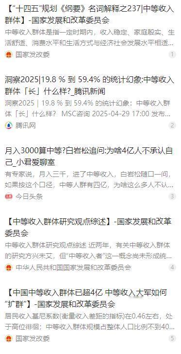 专家说月入3000已经进入中等收入,白岩松反问专家,如果月入3000 就算中等收入,我国中等收入人群已达 4亿,为什么好多人都拒绝承认自己已经进入中等收入人群?专家略微思考后,回答因为他们大部分刚过门槛,还是比较脆弱,不太敢消费。 麻烦看官老爷们右上角点击一下“关注”,既方便您进行讨论和分享,又能给您带来不一样的参与感,感谢您的支持! 事实上,我国对中等收入群体的界定并非单一标准,国家统计局的核心口径是三口之家家庭年收入 10 万至 50 万元,这与 “月入 3000 元” 的个人收入表述存在明显差异。不同研究机构的测算标准也各不相同,有的以个人年收入为依据,有的则结合职业、消费、教育等多重指标,标准的混乱进一步加剧了大众的认知偏差。 地域差异是绕不开的关键变量。同样 3000 元月薪,在三四线城市或许能覆盖基本生活开支,但在北上广深等一线城市,可能连一间偏远地段的单间房租都不够。一线城市年轻人光通勤、餐饮、水电等基础开销就能占去收入的大半,想要储蓄或改善生活难上加难。 即便是在生活成本较低的中小城市,3000 元月薪也面临多重压力。养育孩子的教育支出、赡养老人的医疗费用、突如其来的家庭变故,每一项都可能让有限的收入捉襟见肘。这些刚性支出如同隐形负担,让看似达标的 “中等收入” 变得不堪一击。 4 亿中等收入群体的规模,确实印证了我国收入分配的改善和居民收入水平的提升,这是经济发展带来的显著成果。国家统计局数据显示,这一群体主要具备稳定就业、一定消费能力等特征,对住房、旅游、医疗等领域的消费有潜在需求。 但不可忽视的是,这 4 亿人中的不少群体属于 “脆弱中产”。他们收入来源单一,大多依赖工资性收入,缺乏财产性收入等补充渠道。社保覆盖不全的问题也较为突出,部分蓝领、新市民的社保覆盖率不足 70%,一旦遭遇失业、疾病等意外,很容易从中等收入群体 “掉档”。 经济环境的波动更放大了这种脆弱性。近年来,无论是疫情冲击还是经济增速放缓,首当其冲受到影响的就是这些刚过门槛的中等收入群体。他们没有低收入群体的兜底保障,也没有高收入群体的抗风险能力,只能通过压缩消费来应对不确定性。 消费态度最能反映真实状况。按照中等收入群体的定位,他们本应是消费市场的主力,对中高端商品和服务有更多需求。但现实中,“不敢花、不愿花” 成了常态,人们更愿意把钱存起来应对教育、医疗、养老等未来支出,这种消费谨慎背后是深深的安全感缺失。 其实,大众对 “中等收入” 身份的拒绝,本质上不是否定收入数据的增长,而是对生活压力的真实反馈。统计数字能划定收入区间,但无法衡量房租上涨的压力、子女教育的焦虑、父母养老的担忧,这些无形的负担让 “中等收入” 的标签失去了实际意义。 要让中等收入身份被大众认可,关键是要让统计数据与生活获得感同频。这需要拓宽居民收入渠道,鼓励财产性收入增长,让收入来源从单一变得多元,增强收入的稳定性和可持续性。 完善社会保障体系是重中之重。扩大社保覆盖范围,提高医保、养老等保障水平,健全失业救济、大病保险等兜底机制,才能让人们在面对风险时更有底气,减少后顾之忧。 降低刚性支出压力同样关键。通过调控房价、规范教育收费、优化医疗资源配置等措施,减轻住房、教育、医疗等领域的支出负担,让中等收入群体的可支配收入真正能用于改善生活、提升品质。 同时,建立更科学合理的中等收入群体界定标准也很有必要。除了收入数值,还应纳入地域差异、家庭负担、社保水平等多重指标,让统计标准更贴近现实生活,避免 “一刀切” 带来的认知偏差。 4 亿中等收入群体是我国经济持续发展的重要支撑,也是构建 “橄榄型” 社会结构的核心力量。但数量的增长只是第一步,提升这一群体的收入质量、抗风险能力和生活获得感,才是让 “中等收入” 从统计数字变成大众认同的关键。 当人们不用为住房、教育、医疗过度焦虑,当收入增长能切实转化为生活品质的提升,当面对意外时有足够的保障托底,相信越来越多的人会愿意接纳 “中等收入” 的身份,而这也正是经济发展和社会进步的应有之义。
