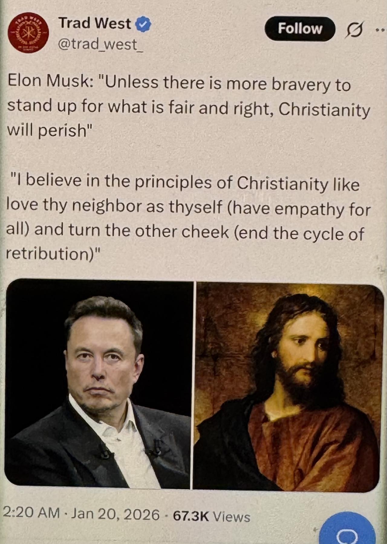 马斯克重磅发声:“除非人们能更勇敢地站出来维护公平与正义,否则基督教将会消亡。”