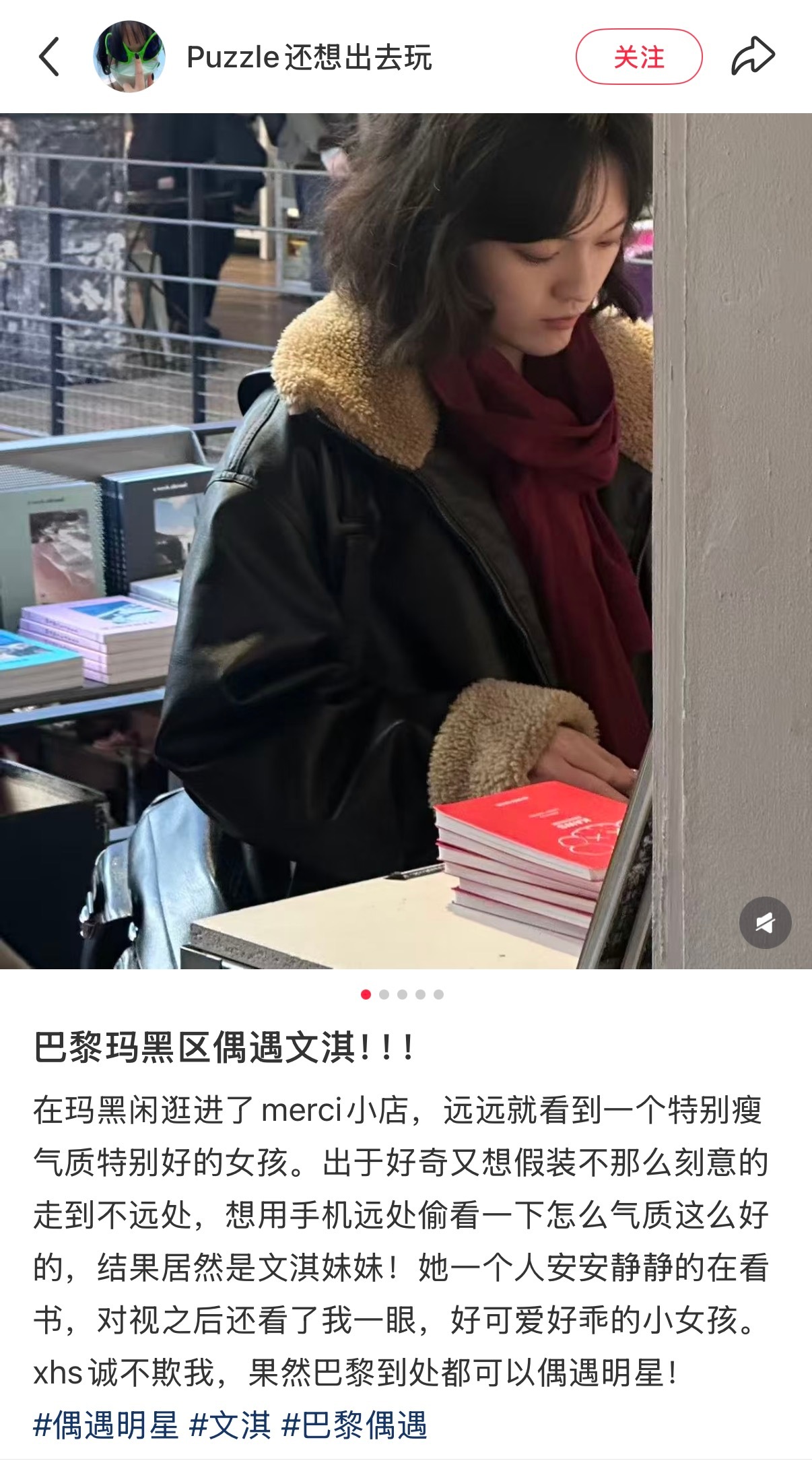 文淇 巴黎书店偶遇文淇气质好好!被文淇迷倒就像呼吸一样简单网友巴黎偶遇文淇看书