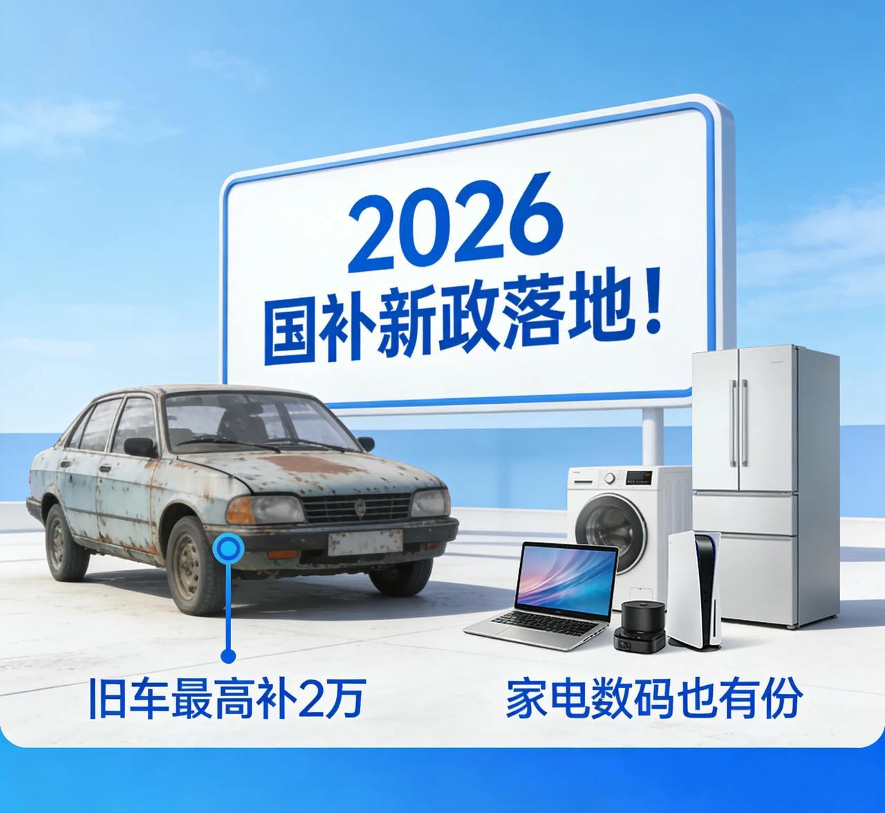 2026国补新政落地!旧车最高补2万,家电数码也有份 家人们!2026年“两