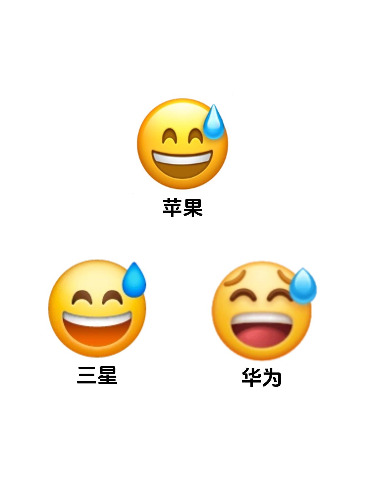 无语了,原来不同手机的表情还不一样 都是emoji表情,不同品牌手机看起来居然是不一样的,苹果三星华为差别好大,大家手机的「😅」看起来是啥样的?