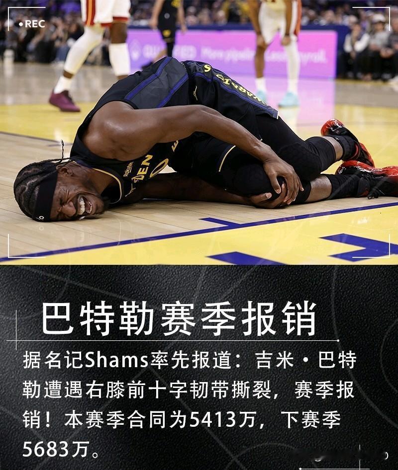 晚安勇士!勇士遭重大打击!! 巴特勒右膝前十字韧带撕裂,赛季报销!!! 勇士的