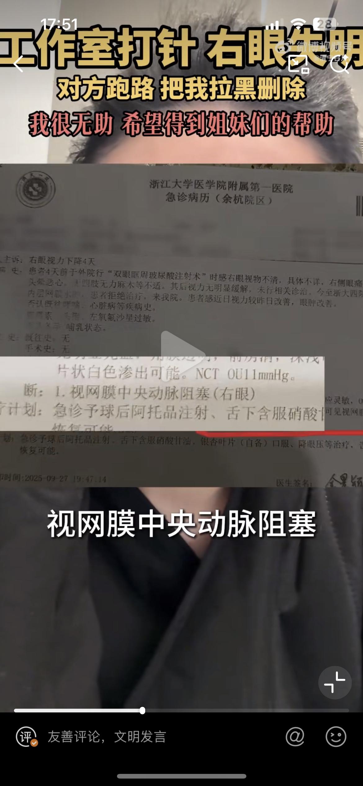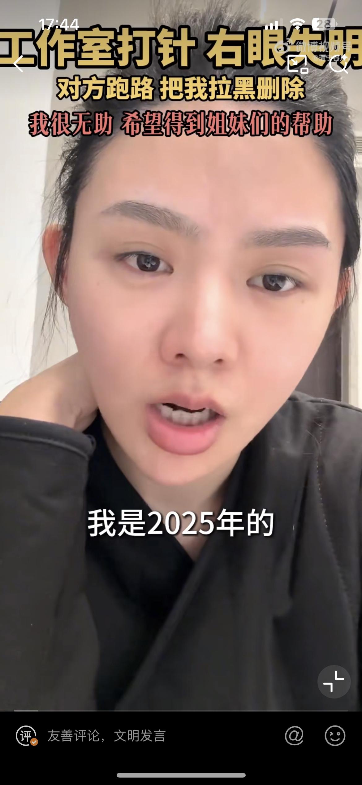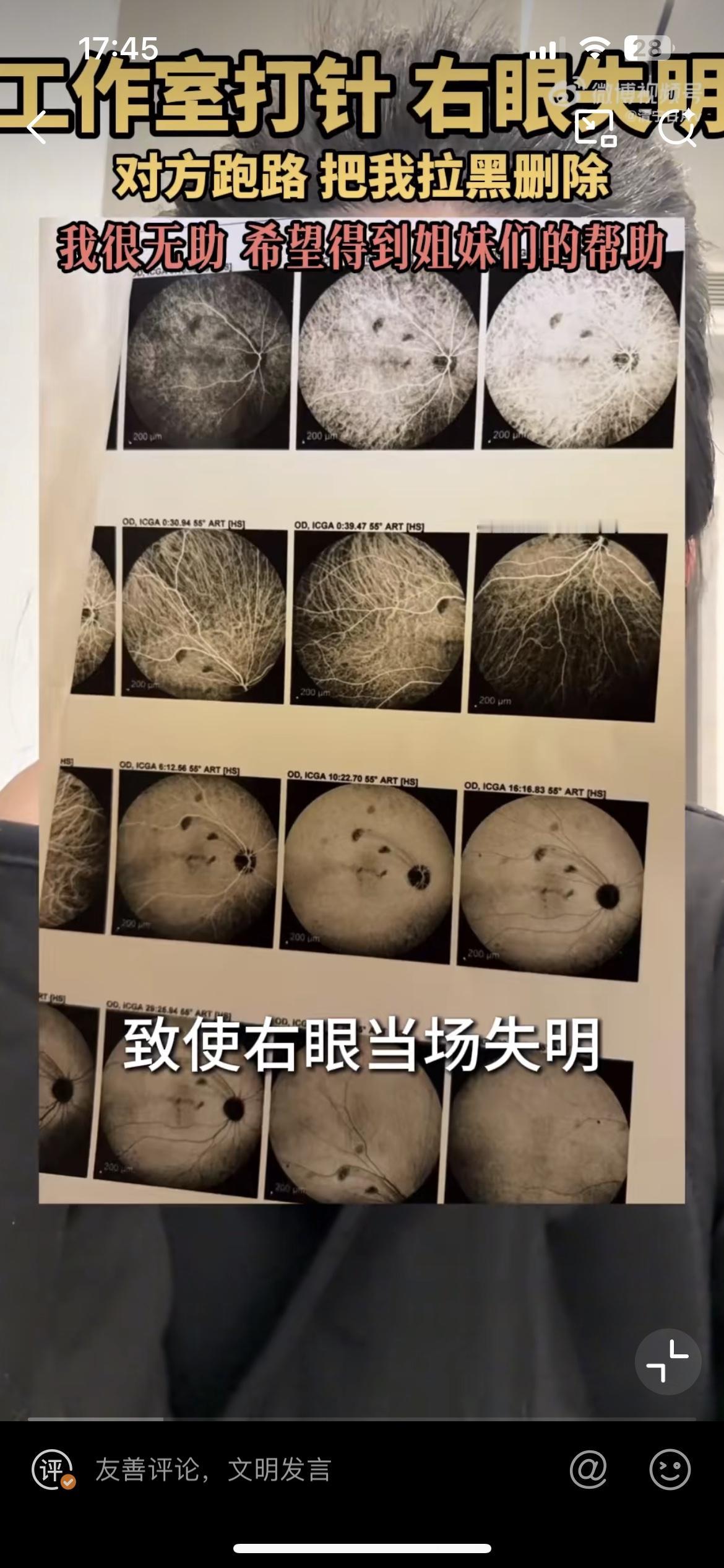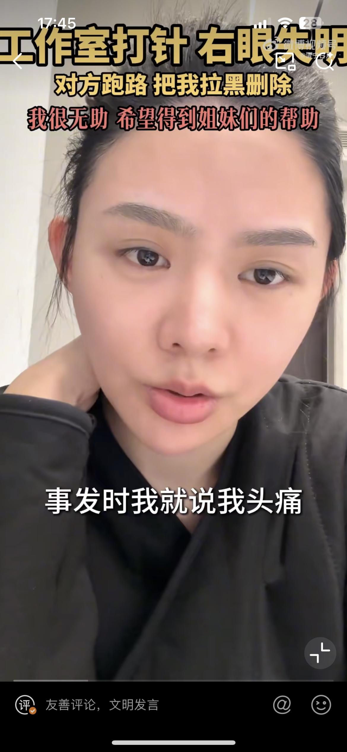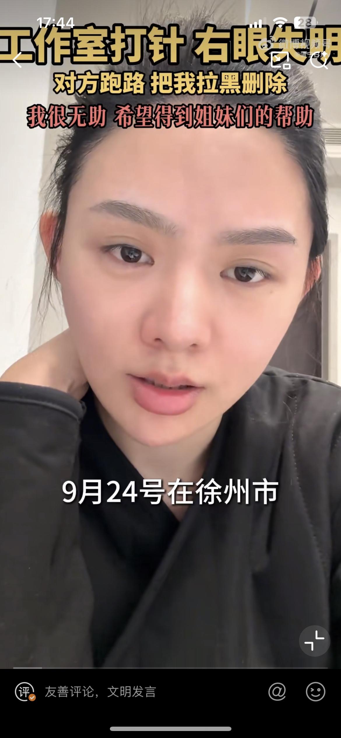 徐州女子花25万做医美,导致右眼永久失明,各位美女们爱美一定要以健康为前提。据这位女子讲,她是去年9月在徐州一个商务楼的办公室接受的美容服务,美容操作人员在她的泪沟加眼尾注入乳白天使,注射完成后导致头痛,当场眼睛看不到了。去到医院检查,确诊为视网膜中央动脉阻塞。整容致残