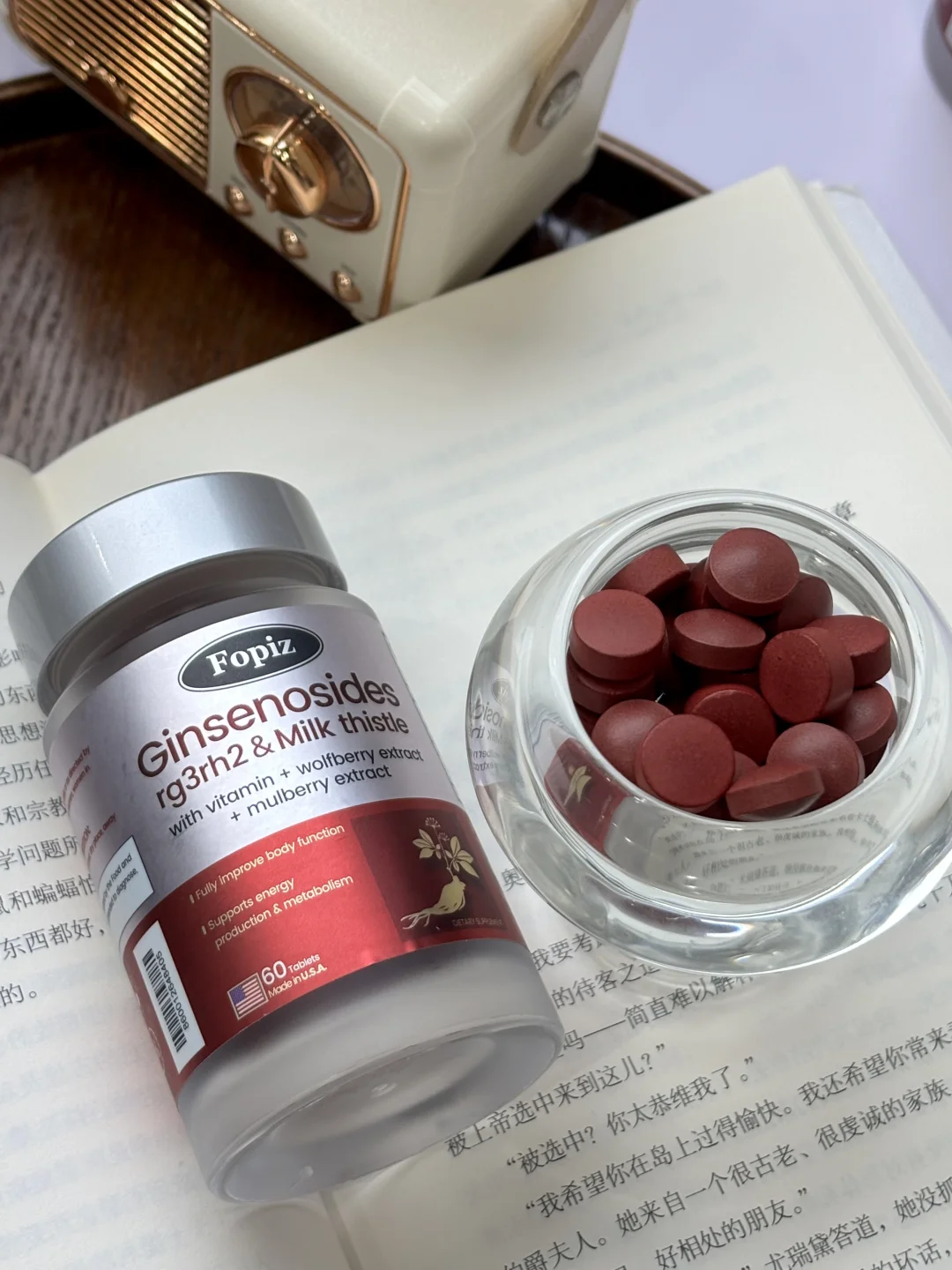 之前熬夜加班+每周2-3次高强运动,体态是练起来了,头也越来越秃了...从去年年末开始吃fopiz人参皂苷片,看它成分除了有人参皂苷(当时也不懂是啥,问了点点说是从参中提取的小分子精华营养,滋养气血的),还有水飞蓟和铁,就把日常重复摄入的补剂停了,刚开始吃着也还好,不知道是不是搭配其他营养补充的原故,练中精力感觉在慢慢回升,起床酸痛感也轻了些