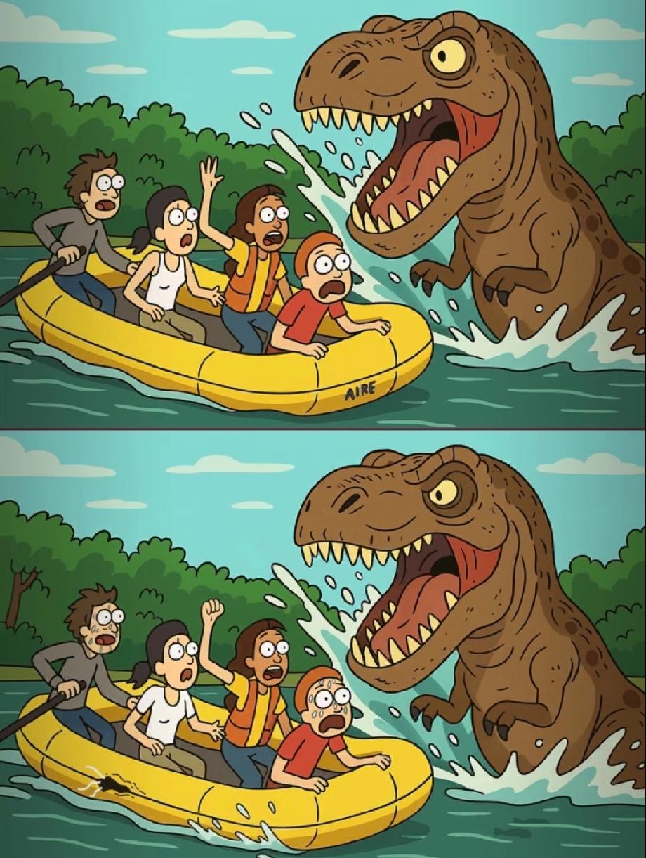 恐龙突袭!这张漂流图藏了15处不同,找到5处才算及格,你敢来挑战吗?