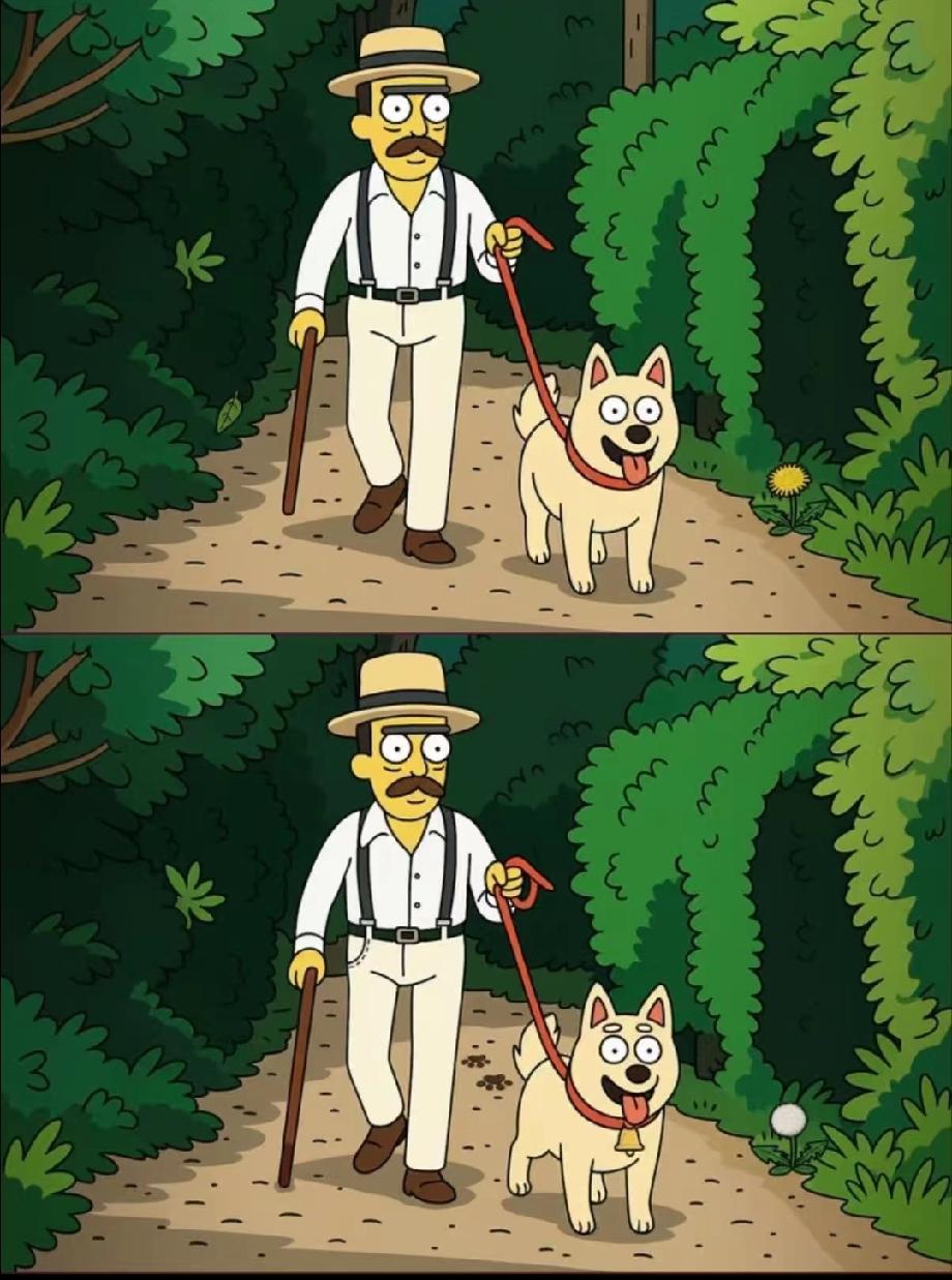 这张遛狗图藏了5处不同,找到3处才算及格,你敢来试试吗?