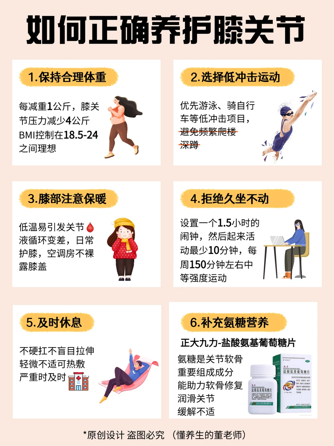 养护膝关节做好这6点,给膝盖稳稳的保护: