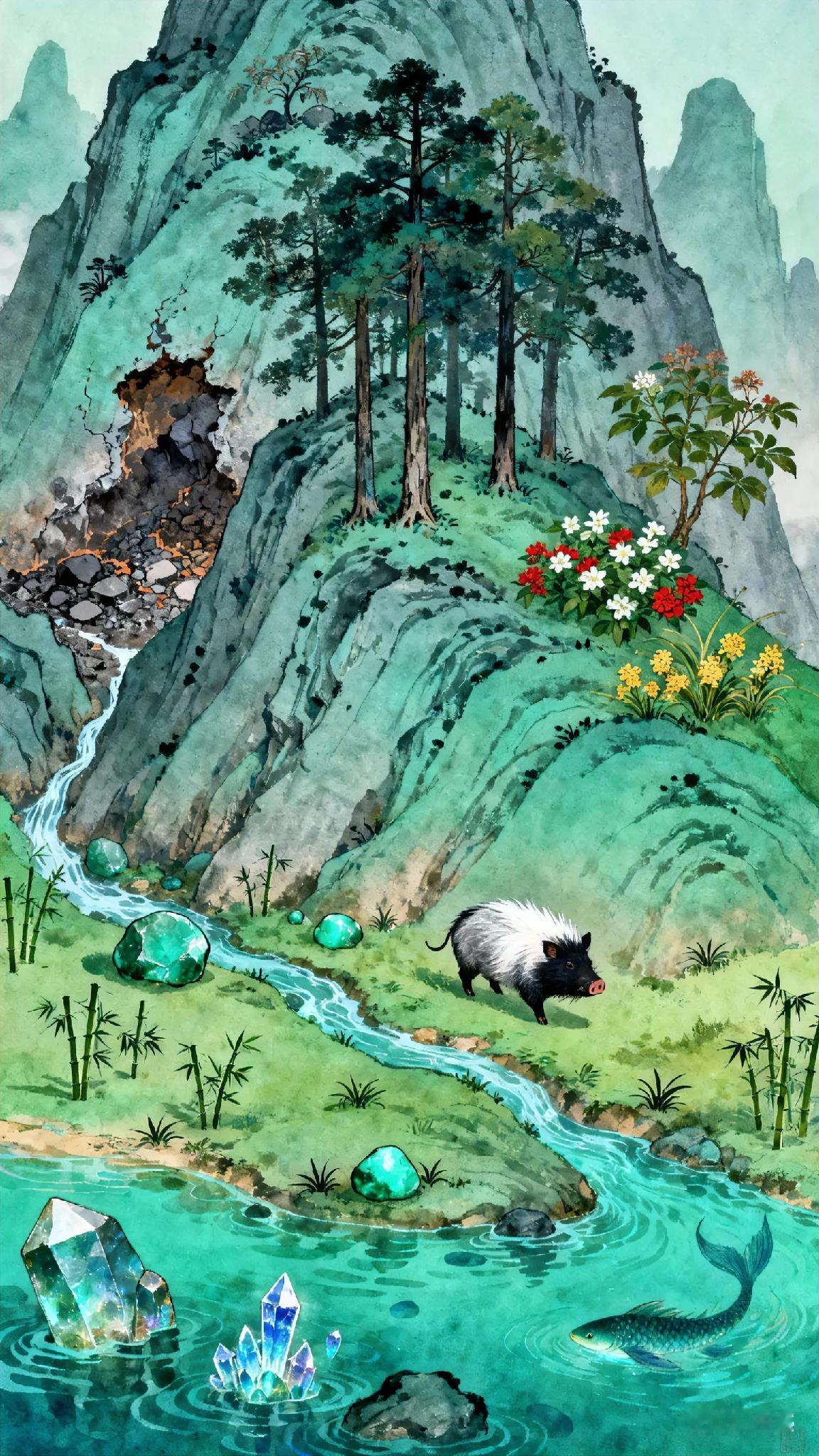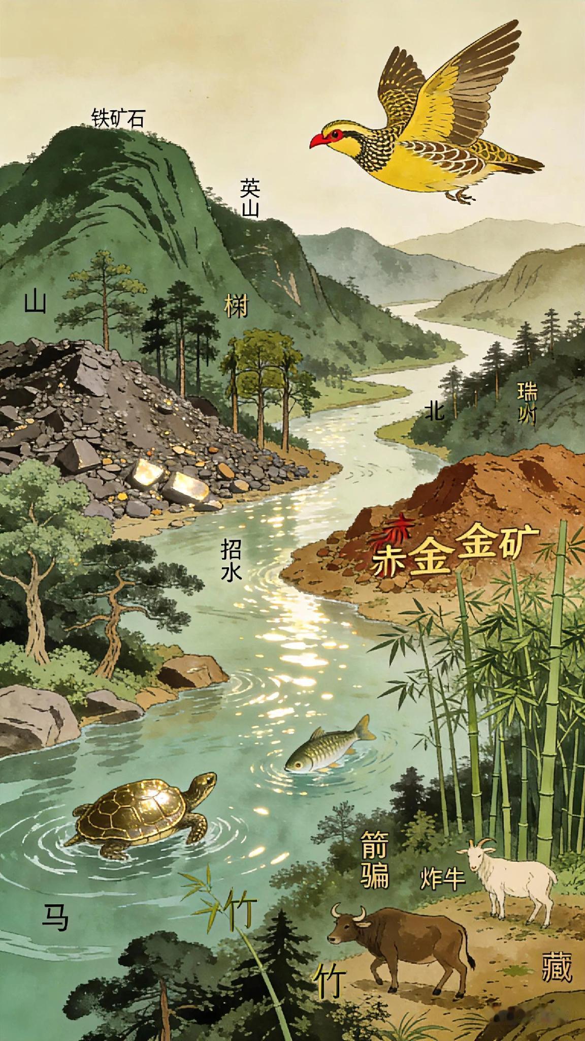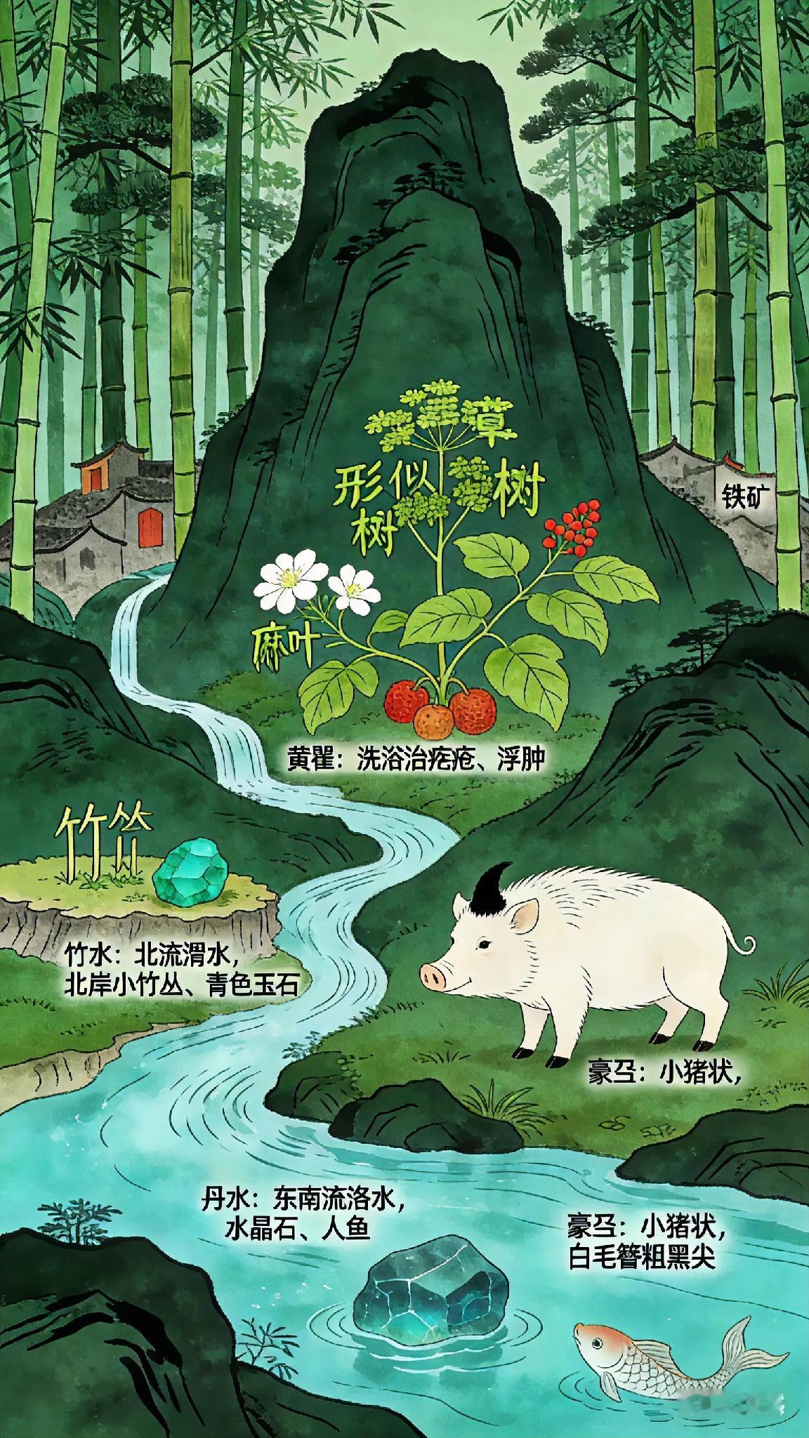 《山海经》是远古地理、传说吗? 往西七十里,是英山,山上有许多纽树和檀树,山的北面盛尸铁,山的南面盛产赤金。 禺水从这里发源,向北流人招水。马水中有很多鲜鱼,它的形状像鳖,发出的声音像羊叫。 山的南面有很多箭骗竹,山中的野兽大多是炸牛和臧羊。山中有一种鸟,形状像鹌鹑,有黄色的羽毛、红色的嘴巴,它的名字叫肥遗。 吃了它可以治癫病,还可以杀死体内的寄生虫。 再往西五十二里,是竹山,山上有很多高大的树木,山的北面盛产铁。 山中有一种草,名字叫黄瞿,形状像樗树,叶子像麻叶,开白色的花朵,结红色的果实,果实外表的颜色是赭色,用它洗浴可治愈疥疮,还可以治疗浮肿病。 竹水从这里发源,向北流入渭水,竹水的北岸有很多小竹丛,还有许多青色的玉石。 丹水也从这里发源,向东南流入洛水,水中盛产水晶石,还有很多人鱼。 山中有一种野兽,形状像小猪,长着白色的毛,毛有簪子般粗细,顶端呈黑色,名字叫豪彘。 山海经 山海经图录 山海经考证 山海经东方神话 山海经神物 上古异兽山海经