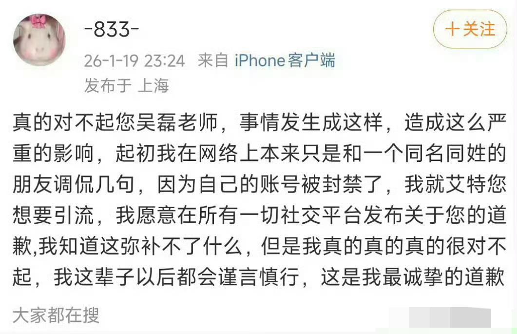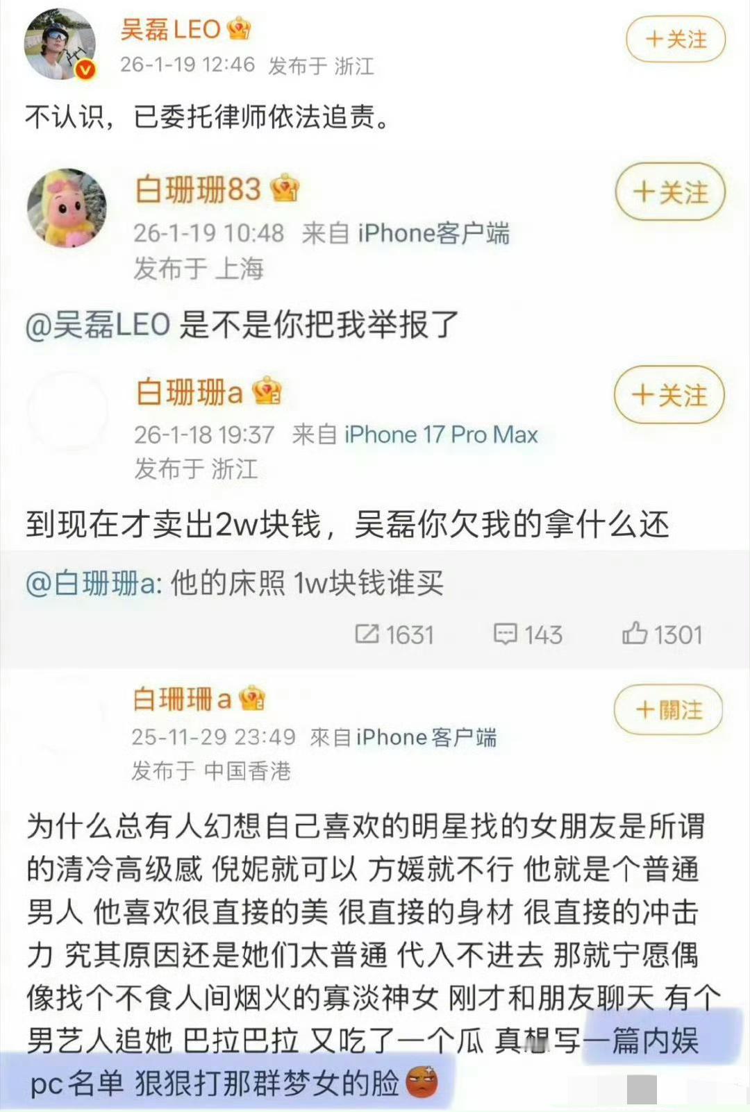 最近吴磊和白珊珊的瓜闹得沸沸扬扬,对比司晓迪爆料时顶流们的暧昧回应,吴磊直接甩出“不认识”三个字,工作室也补刀“毫无交集”,这操作简直给娱乐圈辟谣打了个样儿!白珊珊后来改口说被盗号,但翻遍全网也没找到他俩同框或同款,这瓜八成是假的。 回头再看司晓迪之前锤的那些顶流,当时大家还猜是不是真有隐情,现在吴磊这波操作一对比,反而让人怀疑:司晓迪的爆料会不会也是编的?毕竟明星声明总被吐槽“不直接”,吴磊这次直接否认+法律追责,既保护了名誉,又堵死了造谣者的嘴。这波操作,确实给内娱辟谣开了个好头!