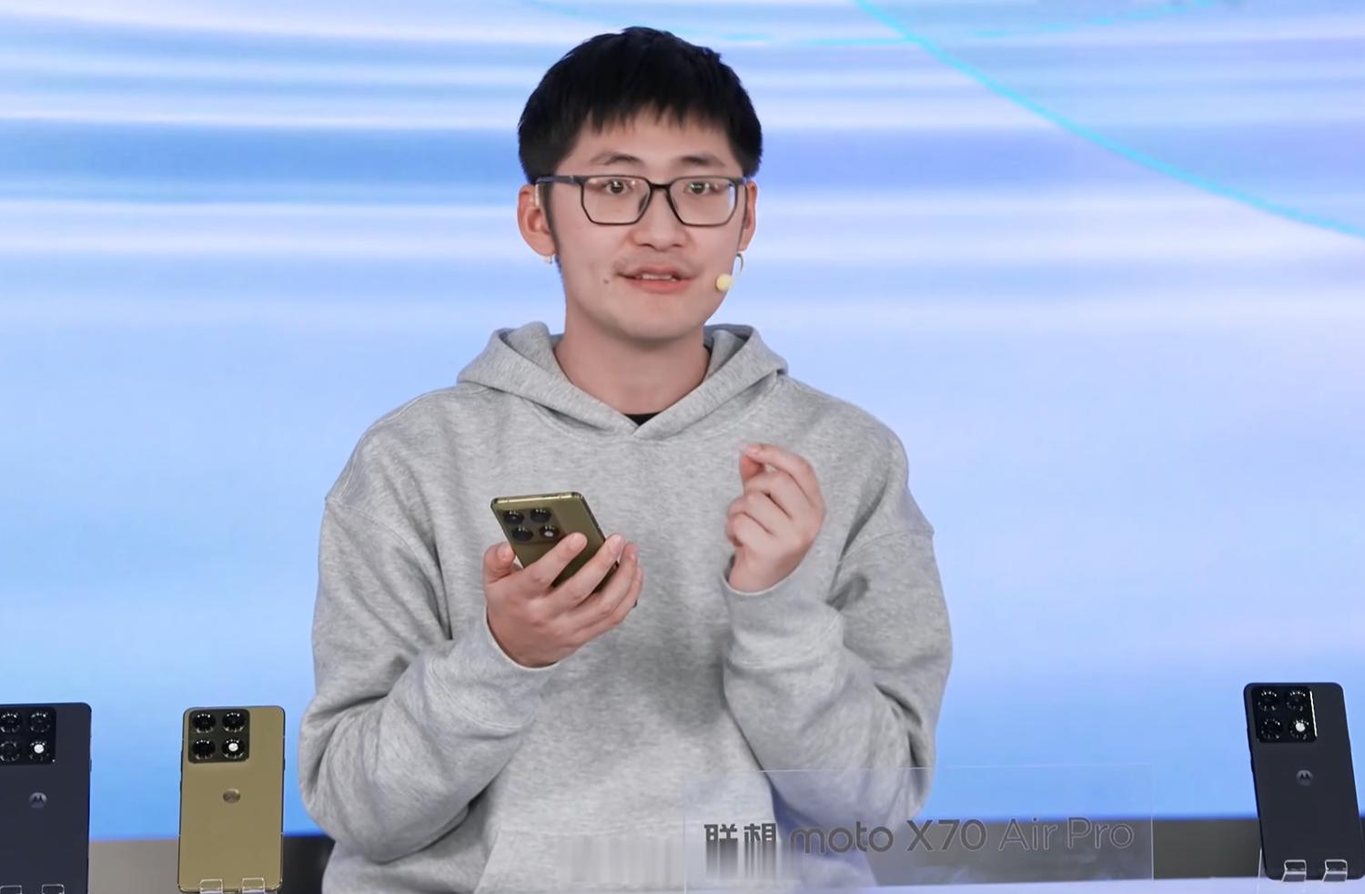 这两天的第三款 Air 手机发布,moto X70 Air Pro,还请来了 Tim,厚 6.99mm,重 186g。
