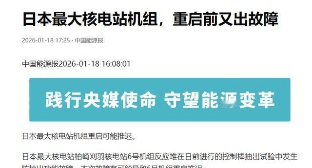 2026年1月18日,东京电力公司宣布了一个令人担忧的消息:他们旗下日本最大的柏崎刈羽核电站,在重启前的最后安全检查中出问题了。 东京电力公司旗下柏崎刈羽核电站6号机组在重启前测试阶段发现缺陷。具体过程从1月上旬启动,控制棒功能验证使用硼或银合金材料,调控堆芯反应速度。测试中,先抽出单根控制棒,系统响应正常。尝试移动第二根控制棒,按设计要求应激活防抽出机制,发出警报并锁定操作,以防堆芯功率急剧上升引发事故。但警报系统保持沉默,没有声音或灯光信号,拦截功能未启动。公司重复验证三次,均无反应。公司立即暂停测试,通知原子能规制委员会。 初步检查指向警报设置错误,可能源于软件配置偏差或硬件连接松动。去年9月,燃气轮机发电机在模拟事故场景下自动关闭,原因是传感器误判温度,导致备用电源中断。11月,辐射监测数据传输装置故障,信号中断数小时,无法实时上报政府。公司工程师更换线路模块,恢复功能。这些问题累积,显示设备老化迹象。核电站自2012年停运以来,维护记录显示多处腐蚀和部件磨损。公司投入资金升级控制系统,但测试暴露遗漏。 1月17日中午,警报故障确认,公司停止测试操作,将已抽出的控制棒全部插入原位。调查显示,防抽出功能设置有误。公司修正设置后,1月18日晚确认警报恢复正常。但这一事件被视为违反操作限制,公司需向监管机构报告偏差。原定1月20日装填燃料并启动发电,现在面临延期,至少需一两天完成验证测试。 民众抗议加剧,新潟县居民集会指出,地震活跃区运行风险高,2007年地震已证明设施脆弱。县议会虽批准预算,但现场混乱,约300人反对,举牌质疑公司能力。民调显示,六成居民认为安全条件不足,七成对公司运营缺乏信心。2024年1月石川县地震导致多台机组冷却水溢出,进一步加深疑虑。公司管理能力备受质疑,2023年1月提交核电站审查材料查出131处错误,部分数据挪用自其他机组。这类疏漏让外界对其安全管控充满疑虑。 柏崎刈羽核电站停摆源于2011年东日本大地震,受福岛核泄漏影响,这座全球装机容量最大的核电站之一,从2012年3月起全面关停。多年来重启之路波折,2021年4月,日本原子能规制委员会以存在严重安全缺陷为由,禁止东京电力公司重启这一核设施。直到2023年12月,规制委员会才正式解除运行禁令。2025年12月,新潟县议会批准相关补充预算,为核电站重启扫清地方手续障碍。但这一决定立刻引发当地民众强烈抗议。当时议会旁听席挤满约300名反对者,现场多次出现混乱。 新潟县民调数据说明问题,约60%的居民认为重启条件尚未齐备,70%的居民对东京电力公司的运营能力感到不安。不少民众质疑,为何要在民意反对声中推进重启。这座核电站的安全隐患早有先例。2007年新潟县中越近海地震后,该电站出现变压器起火、含微量放射性物质水体泄漏等问题。2024年1月石川县地震,又导致多台机组冷却水溢出。 东京电力公司暂未明确故障原因,只表示正在全力调查。但有消息指出,警报系统恢复正常前,该机组无法投入运行。这意味着原定于1月20日的重启计划,至少面临不确定性。这不是该机组近期首次暴露安全漏洞,去年9月,用于事故防范的燃气轮机发电机在试运行期间突然自动停转。同年11月,向政府传输辐射水平等关键信息的系统装置,也出现过故障。目前6号机组重启时间尚无定论,故障排查进度、民众反对压力,都将影响最终决策。对于这座停摆15年仍问题频出的核电站,后续每一步动向都值得密切关注。
