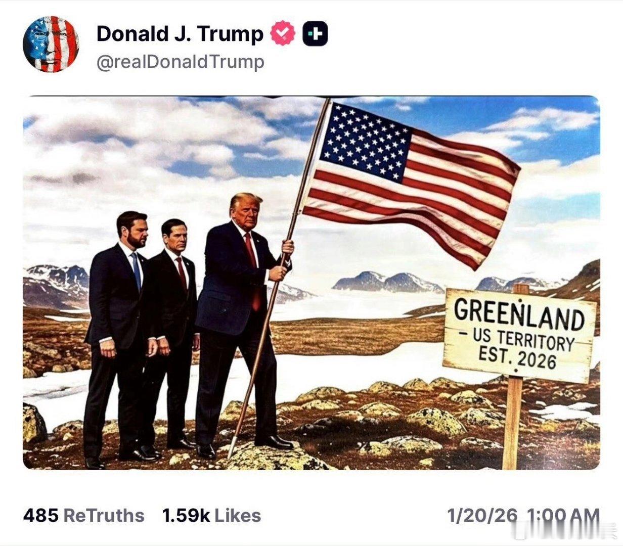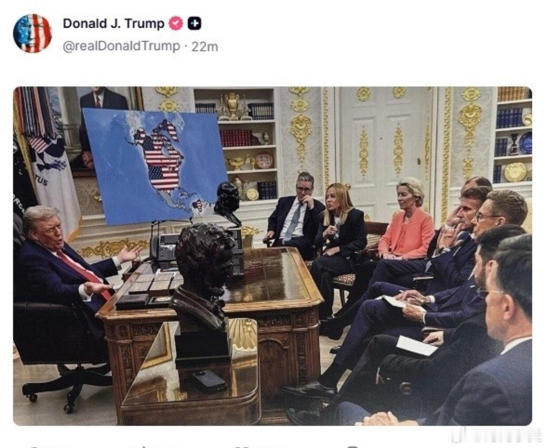 特朗普“疯狂”操作令盟友不安!当地时间20日凌晨,特朗普在其社交媒体连发两张图,一张“手执国旗登格陵兰岛,宣称2026年将其纳入领土”;另一张白宫与欧洲领导人会面图,展板地图上加拿大、格陵兰岛、委内瑞拉皆被美国国旗覆盖。特朗普如此行径,是装都不装了。