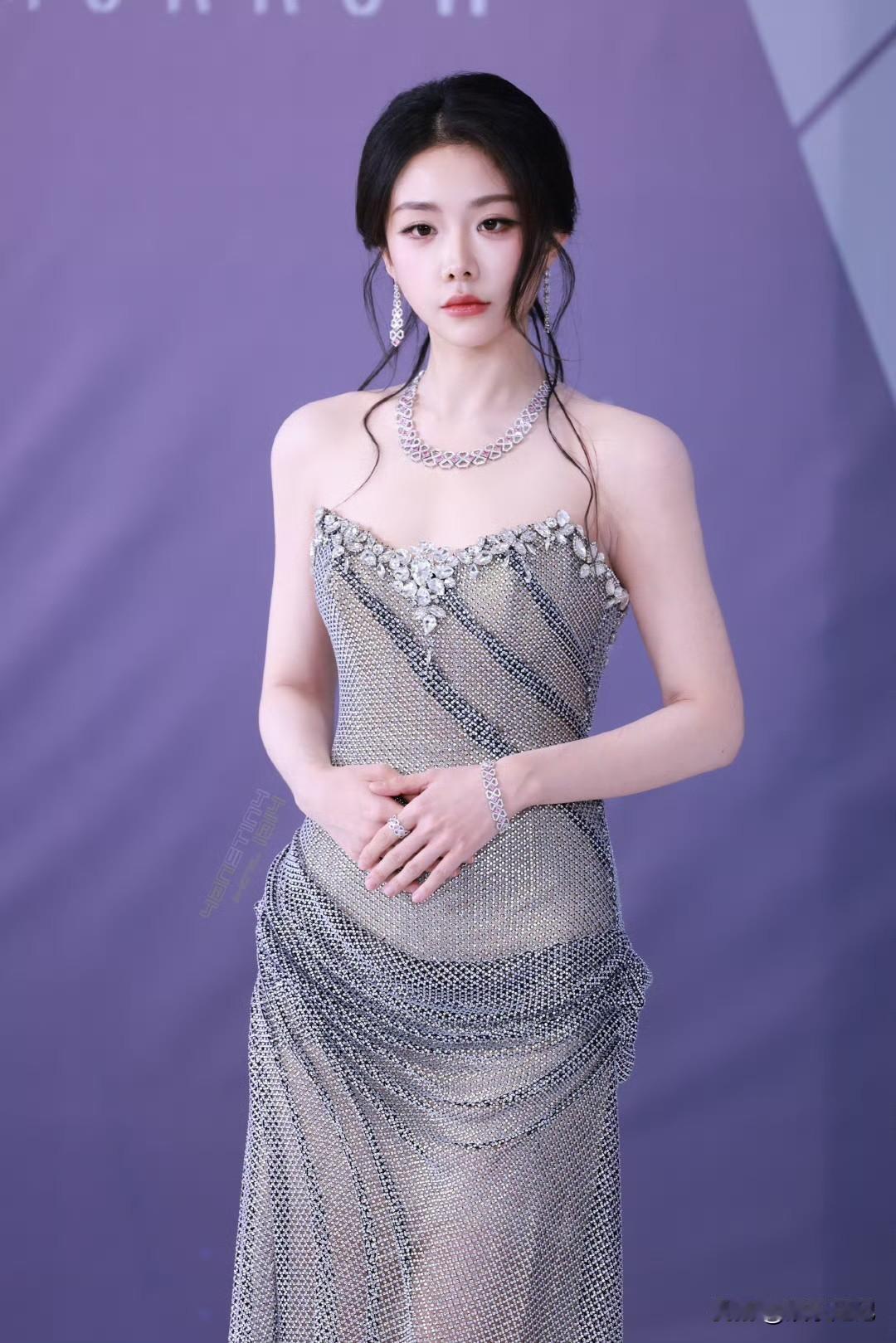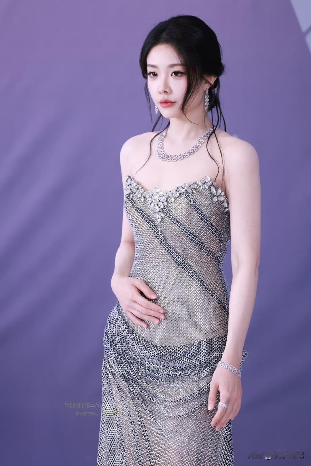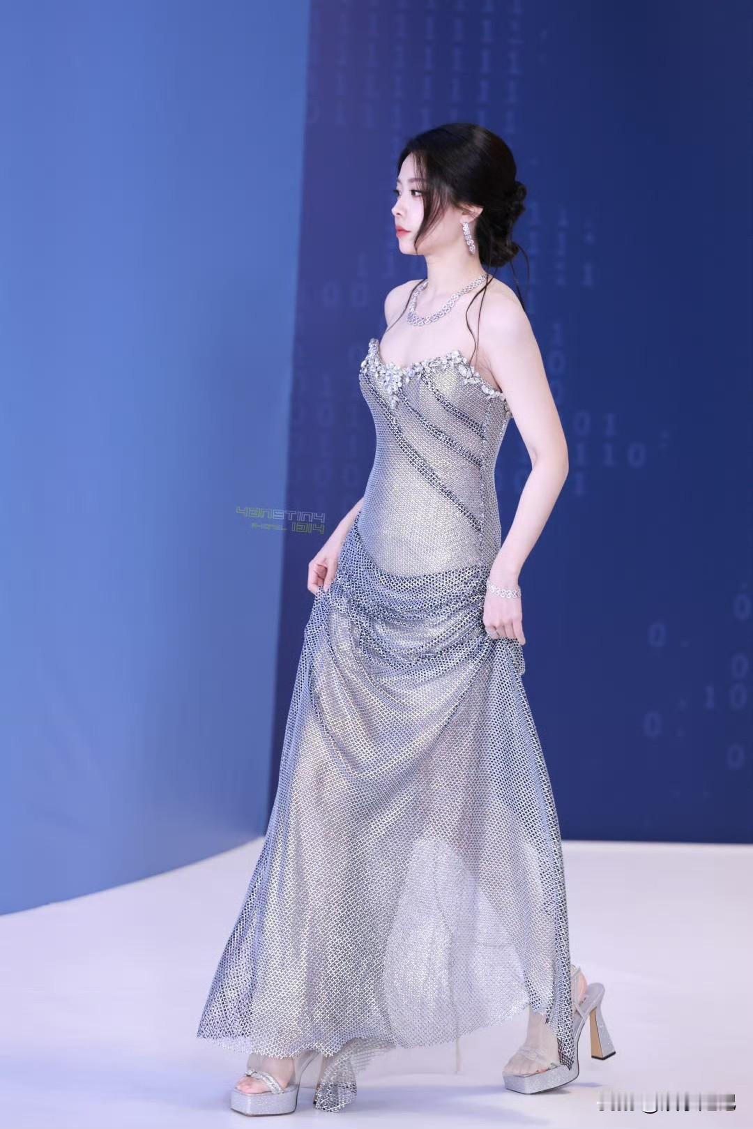 喻言💎银钻抹胸长裙勾勒出曼妙曲线,清冷红唇自带疏离又勾人的气场,美得惊艳