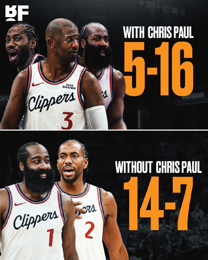 保罗出战:快船5胜16负 保罗缺席:快船14胜7负 美媒Basketball Forever将快船赛季初的责任想甩给保罗,但事实情况并非如此。 在保罗离队后,其实快船又经历了一波5连败,直到对阵湖人时,祖巴茨崴脚受伤,快船才找到了 空间型的最佳打法,且伦纳德明显增多了三分出手,改变了自己十来年生涯的固有打法,这才是快船如今能持续赢球的逻辑。 而在祖巴茨复出后,泰伦卢也似乎想明白了,他把4个核心拆成两组使用,哈登更多的和祖巴茨搭档,小卡更多的和大洛搭档,两套风格迥异的打法来适应不同对手,取得了不错的效果。 如果只把输球的责任甩给保罗,显然是不合适的,保罗是底薪,出场时间也不多,他唯一能影响的就是更衣室的氛围,但仅仅是更衣室有点问题,就能连输成那样,也不太现实。