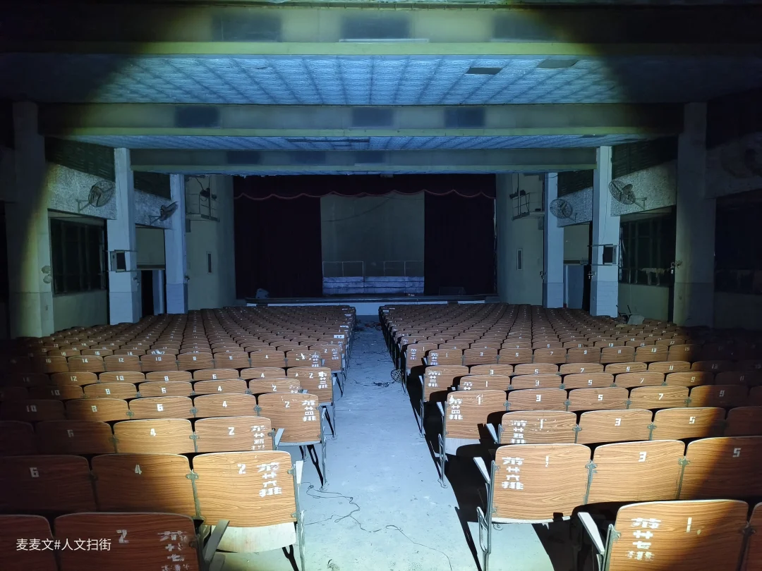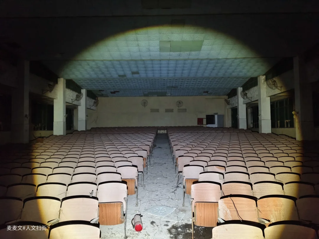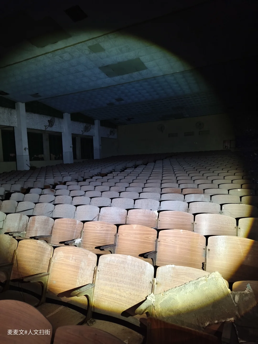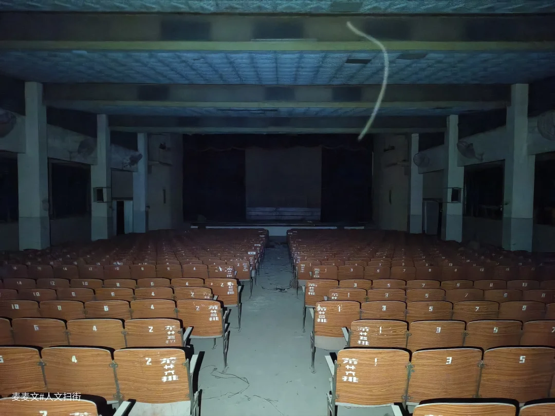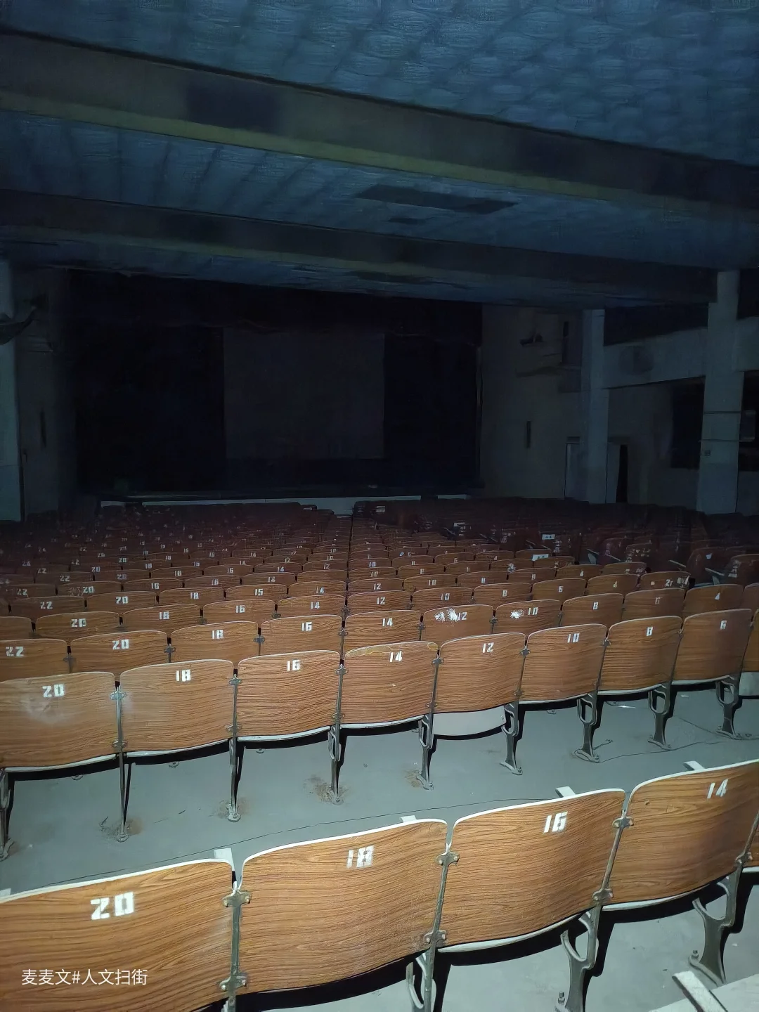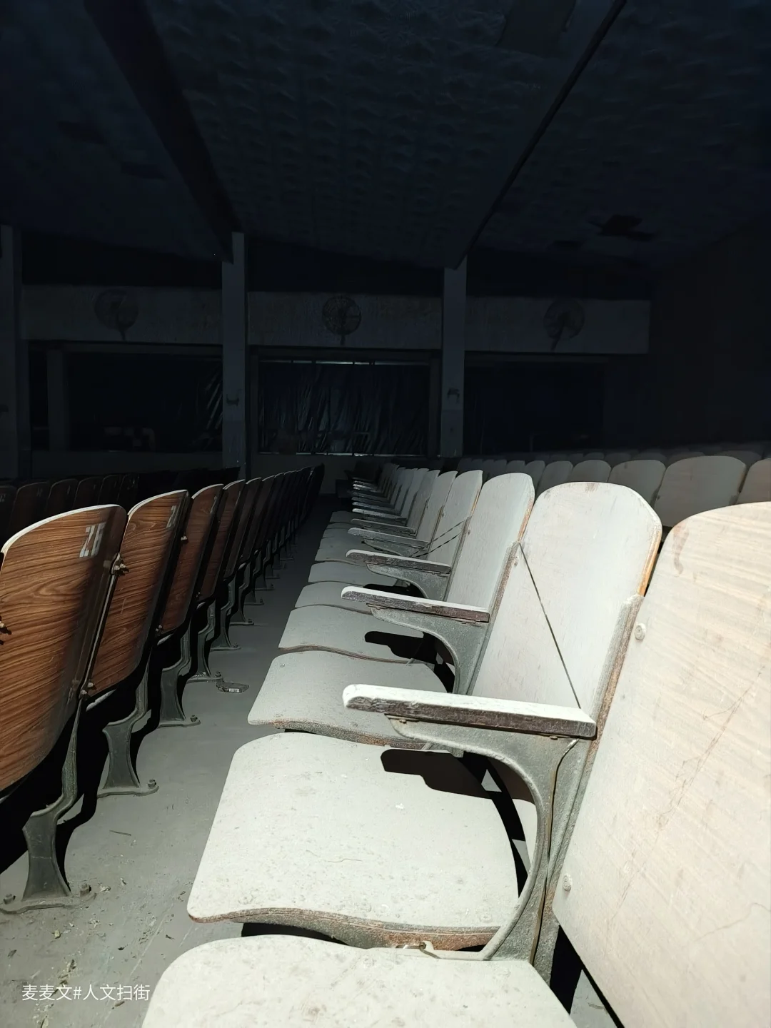 它保存得极为完好,放映厅内座椅整齐排列,木质的椅背泛着温润的光泽,上面的数字编号虽有些许磨损,却更添了几分岁月韵味。头顶的天花板有着独特的纹路,在昏暗的光线下,透着一丝神秘的蓝调。