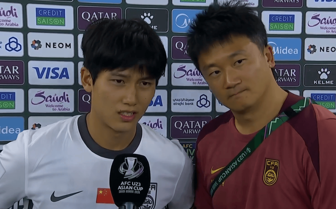 虎扑01月21日讯U23亚洲杯半决赛,中国3-0越南,赛后中国U23球员向余望接受媒体采访。