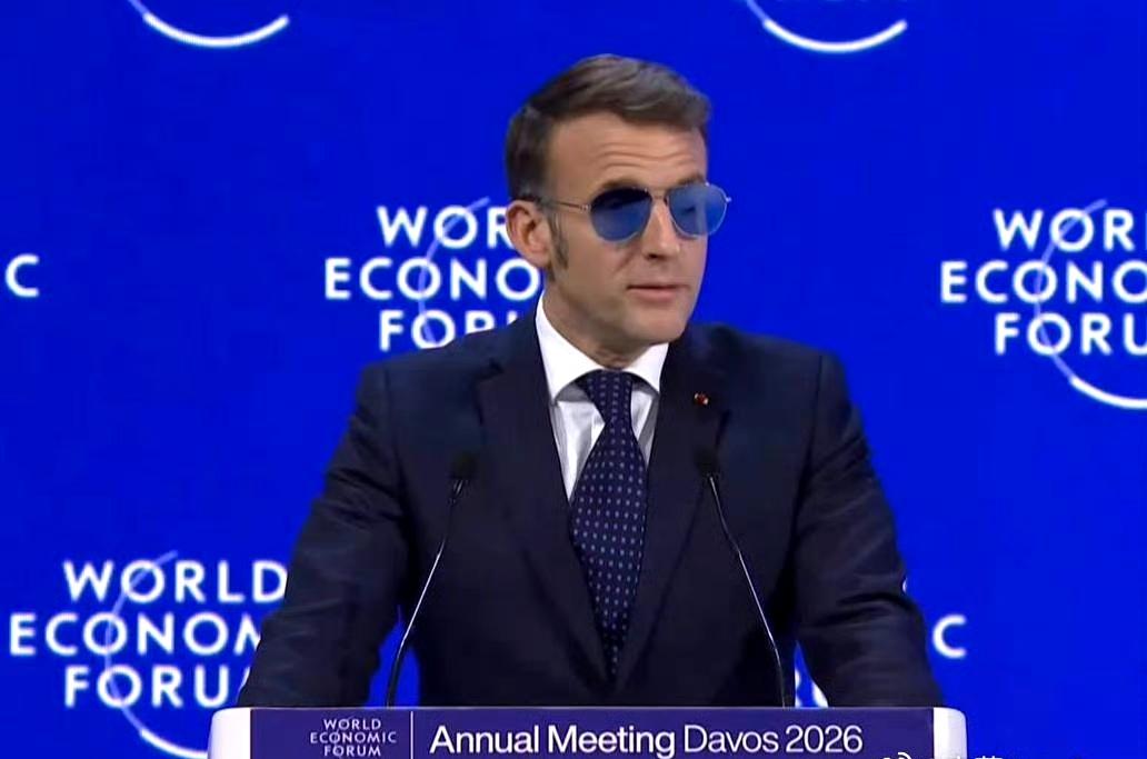 马克龙戴着墨镜亮相达沃斯论坛