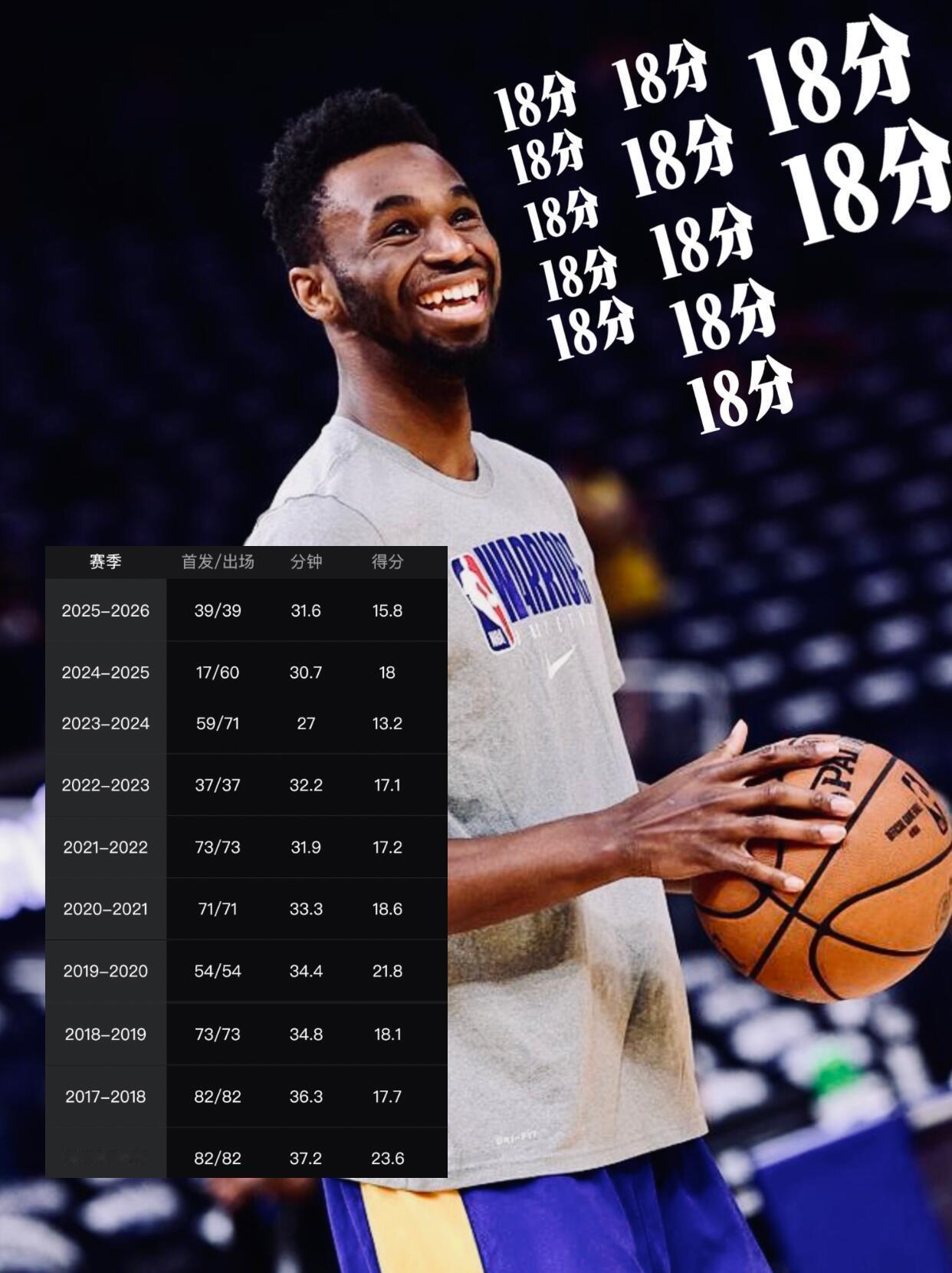 自2016年至本赛季为止,维金斯近十个赛季目前场均得分18.11分,嘴哥平时是不是拿计算器算过每场应该得几分啊