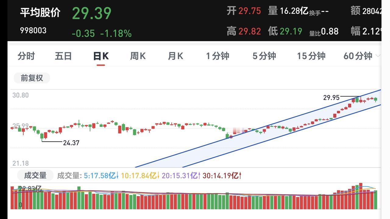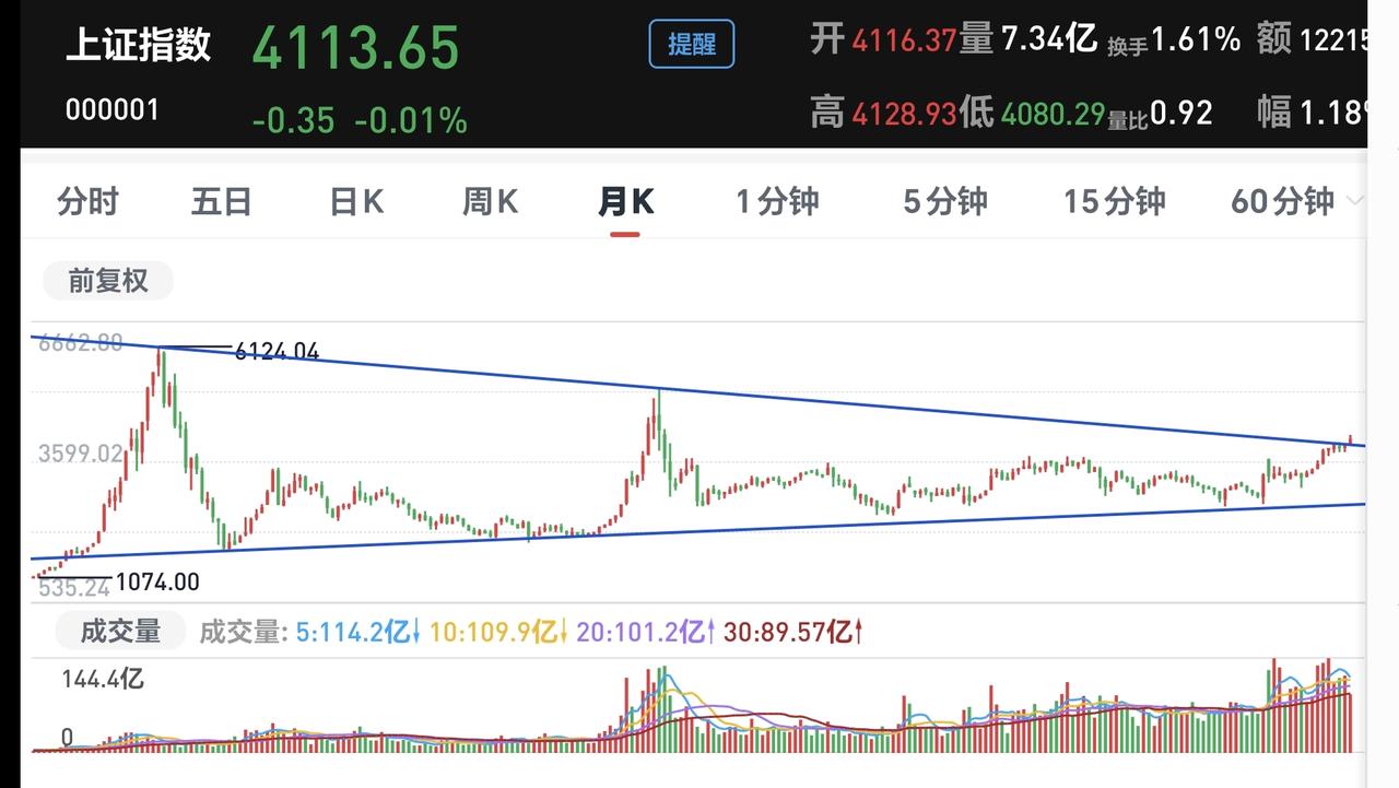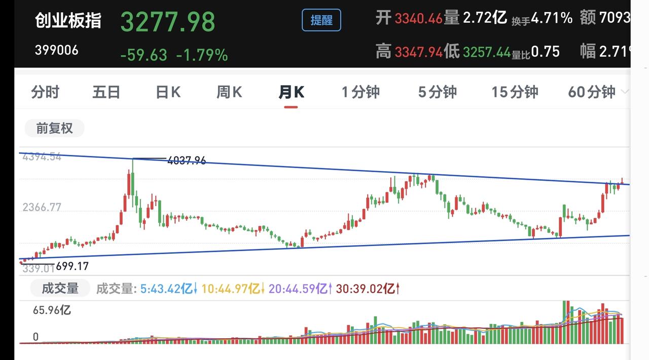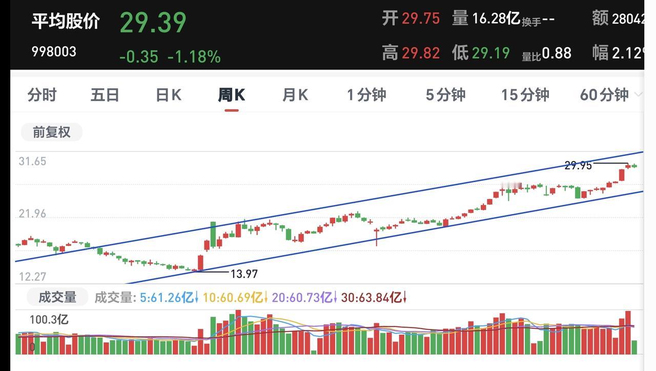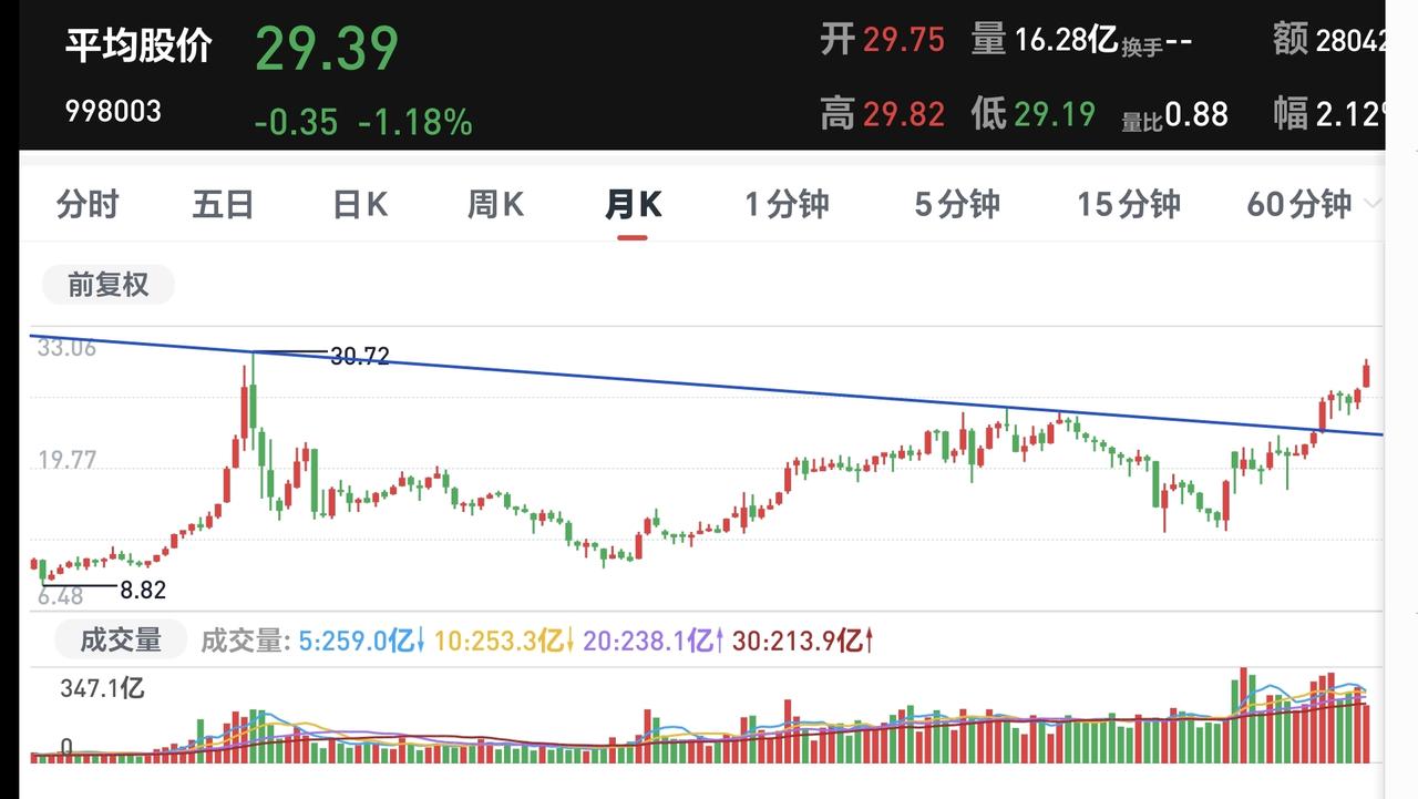 基金:现在还处于牛市中的依据是什么 我们来看一下下面的截图1,这是上证指数月K线图,从图中可以看出,我画了一条倾斜向下的斜线,这是长期以来压制上证指数上涨的反压线,本月的上涨已经突破了这个反压线,这个突破的确认,需要等到月底收盘的时候才能确定。 我们来看一下下面的截图2,这是创业板指月K线图,从图中可以看出,我也画了一条倾斜向下的斜线,这也是长期以来压制创业板指上涨的反压线,本月的上涨一度突破了这条反压线,但这几天的回调又来到了这条反压线附近,是突破还是遇阻回落,也是需要月底收盘的时候确定。 我们来看一下下面的截图3,这是平均股价日K线图,从图中可以看出,我画了两条倾斜向上的斜线,这是平均股价日线级别短期上涨通道,现在的位置处于这个上涨通道内。也就是说,平均股价日线级别短期处于上涨趋势中。 我们来看一下下面的截图4,这是平均股价周K线图,从图中可以看出,我画了两条倾斜向上的斜线,这是平均股价周线级别上涨通道,现在的位置处于这个上涨通道中,也就是说,平均股价周线级别处于上涨趋势中,平均股价大方向向上。 我们来看一下下面的截图5,这是平均股价月K线图,从图中可以看出,我画了一条倾斜向下的斜线,这也是长期以来压制平均股价上涨的反压线。前段时间上涨已经突破了这条反压线,也就是说,平均股价月线级别的下跌趋势已经被改变。 平均股价基本上代表了整个市场,日线级别短期处于上涨趋势中,周线级别处于上涨趋势中,月线级别突破了下跌趋势线,也就是月线级别下跌趋势已经被改变,所以,市场大方向向上,这是毋庸置疑的,市场现在还处于牛市过程中,这是不用怀疑的,这也是现在还处于牛市中的依据。 我每天都会分享我的观点,我的观点只代表我个人的看法,不能作为你操作的依据,据此操作后果自负。
