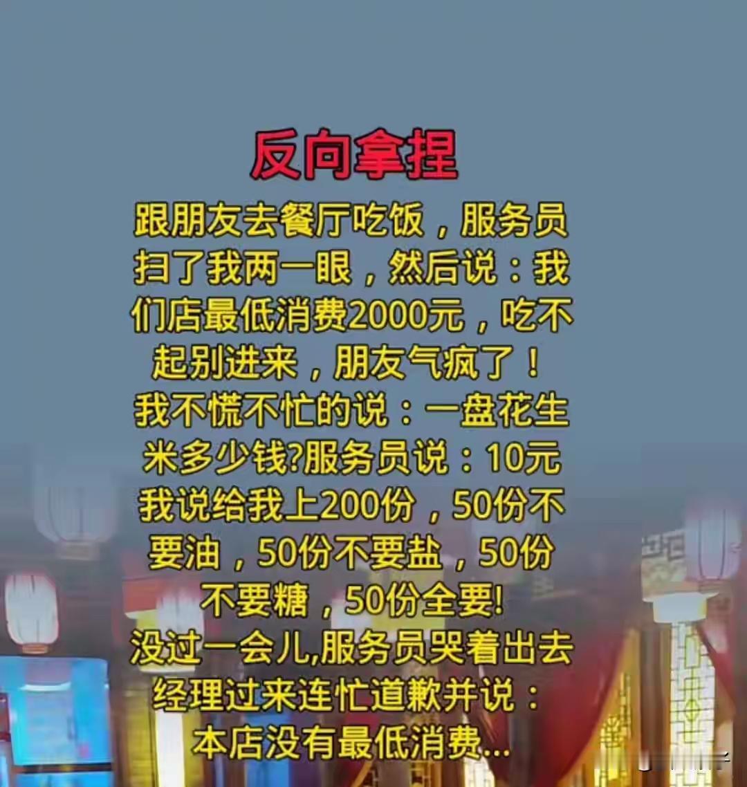 最低消费2000元标准的饭店,花生米怎么也得250一盘吧?N年前的老梗还拿出来!我还以为我没老呐[捂脸哭]