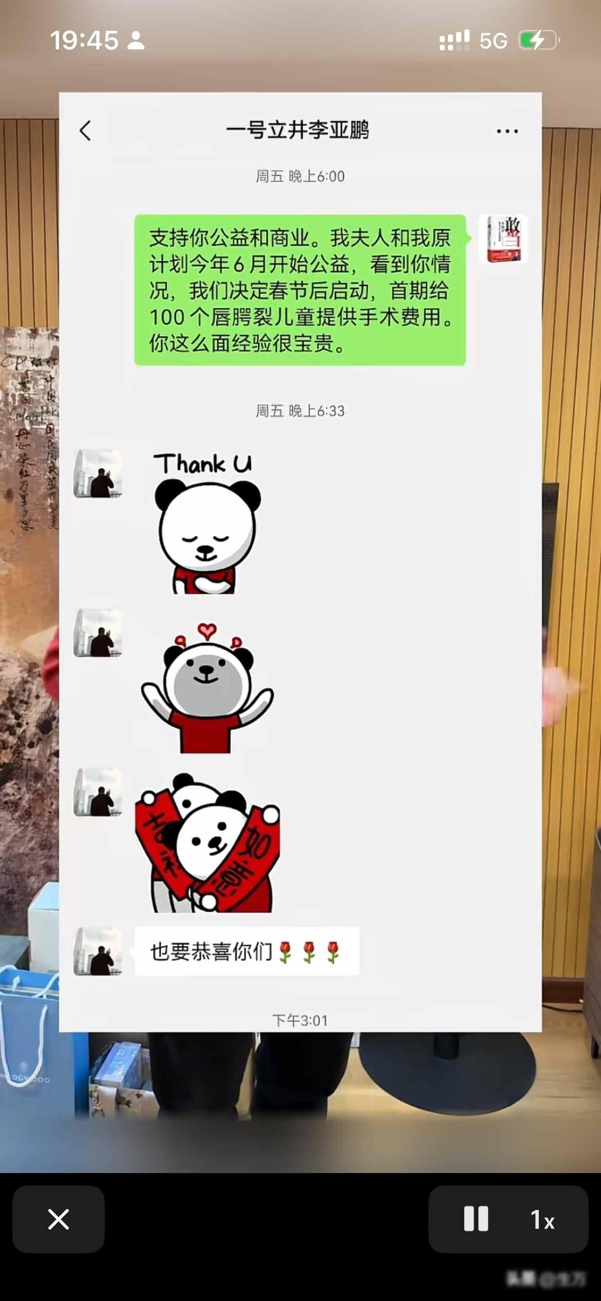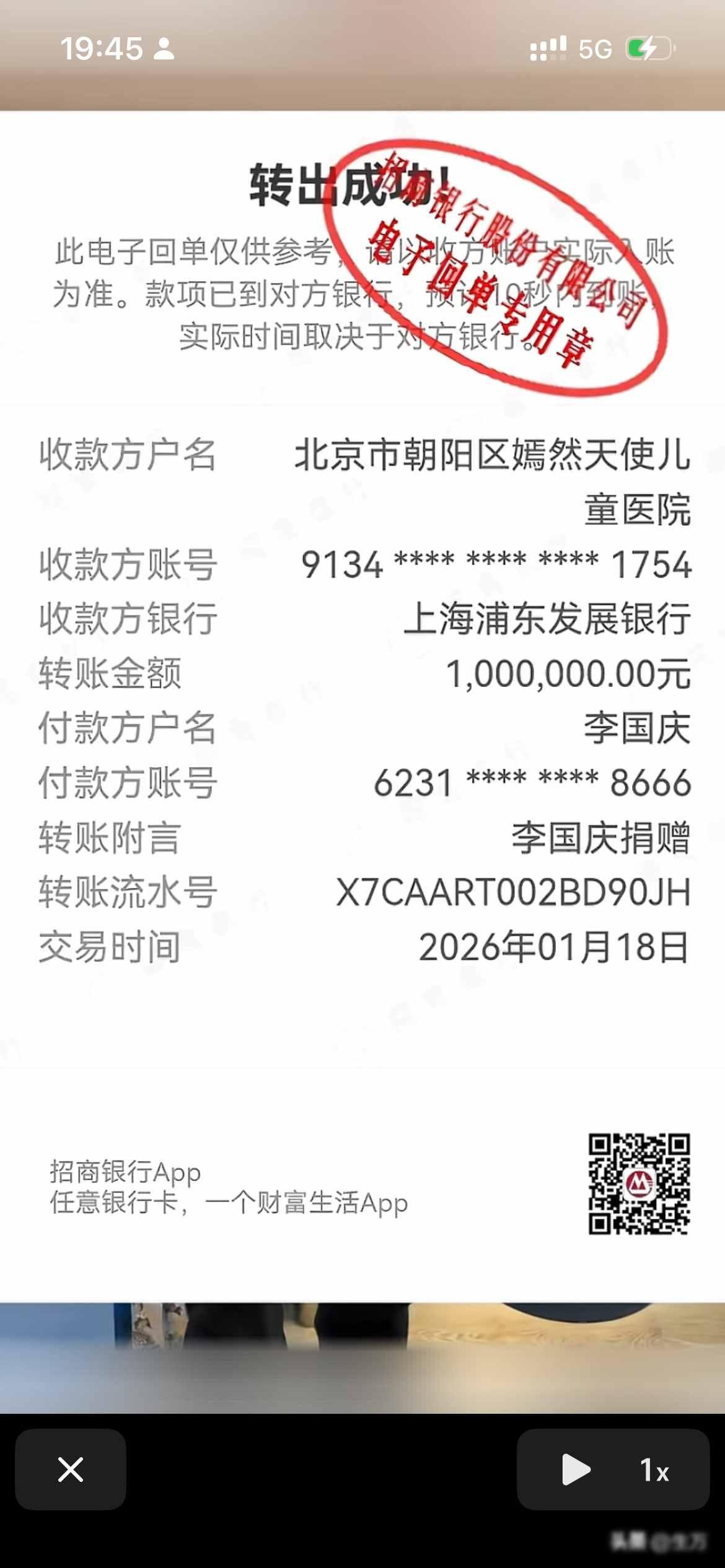 李国庆向嫣然儿童医院捐了100万! 近日,社交平台上一张一百万的捐款单惹了不少讨论,李国庆以个人名义捐了一百万给嫣然儿童医院,正好回应了他之前发的那段视频,视频里他说这家开了十多年公益医院日子不好过,希望大家能帮一把,能帮多少算多少,没想到李亚鹏主动加他微信,说要聊聊这事。 两人对话曝光后,李国庆说他信得过李亚鹏的本事,捐款不限定用途,医院怎么用最实在,他都听医院的,这态度跟网上那些猜来猜去的流言完全不一样,这场自发的筹款已经超了一千万,李亚鹏在直播里讲了,每一分钱怎么花都会公开,连观众打赏的钱,一笔一笔都列清楚。 当晚的捐款公示说,医院打算先把钱用在买新医疗设备和帮穷苦孩子治病上,有网友发现,自从这事闹开,医院官网的访问量涨了三成,热线电话一直没人闲着,这事儿看着是捐钱帮忙,其实大家更关心钱到底花到哪儿去了,公益机构怎么把账算清楚,成了人人都在问的问题。