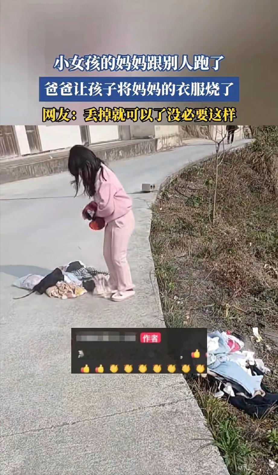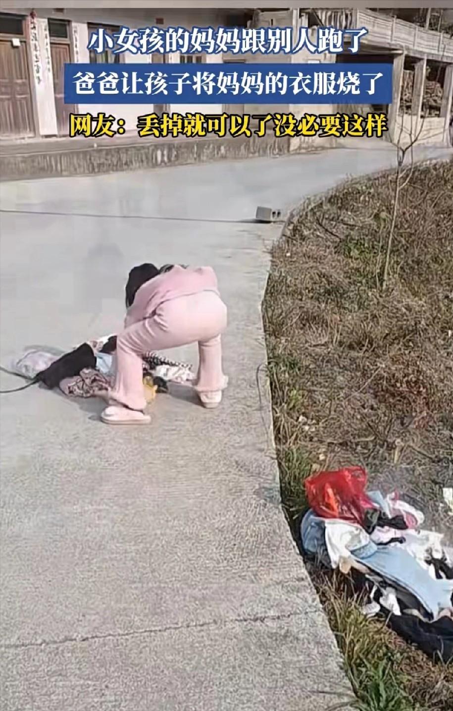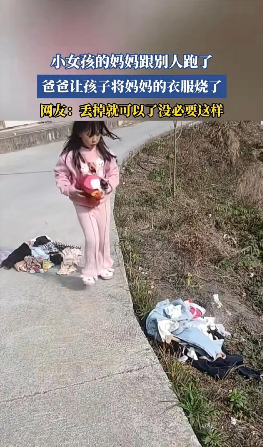 贵州一男子因老婆出去务工跟人家跑了,然后就叫女儿将老婆的衣服拿到家门口去烧。女儿应该有五六岁这样,可能并不了解为什么要烧妈妈的衣服,但父亲叫她烧她就听话烧了。事情发到网上后,网友纷纷指责男子,将衣服扔掉就可以了,为何让孩子面对这种问题,让孩子去烧。 这个男人的行为,真的是让人觉得不可思议,眼看妻子离家出走,他心里的愤怒和无奈不断累积,最终选择了一种极端的方式——让自己年仅五六岁的女儿当着家门口,亲手烧掉妈妈的衣物。 小女孩什么也不懂,只是顺从地蹲在火堆旁,手里捏着衣服,眼睛里流露出一丝困惑和畏惧,火光映在她脸上,把她的小脸烤得通红。 表面上,这似乎是在“清理旧物”,但实际上,这个行为已经把父亲的怨恨,直接灌入了孩子的内心世界。 孩子本该在父母的爱和保护下,慢慢认识世界,而父亲却让她卷入了成人的愤怒,把她拉进一场针对母亲的“仪式”,潜移默化地在心里种下仇恨的种子。 五六岁的孩子,正处在认知家庭和理解亲密关系的关键期,在她眼里,妈妈或许只是暂时离开,但父亲的强迫行为,让她第一次感受到亲情的对立和混乱。 等她长大,回忆起这段经历,可能会混淆对父母的感情:是怨母的不归,还是对父亲的恐惧和失望?这种心理创伤很可能伴随她多年,甚至影响她未来处理亲密关系和家庭矛盾的方式。 网友批评得也很有道理:成年人如果心里有火,完全可以找个安全的方式宣泄——自己去烧旧衣服、找个没人的地方发泄,或者直接处理掉都行。 但把孩子拉进来,逼她动手,就是在她幼小的心灵里,植入一种恐惧和责任感。 不管妻子离开的原因如何,父亲的做法已经触碰了两条底线:一是法律风险,二是孩子的心理安全。 院子或家门口生火,本身就有安全隐患,一旦火势失控,可能伤到邻居、危及公共安全;孩子是最无辜的,她不该为成人的冲突,承担任何责任。 这件事里,小女孩是最大的受害者,家庭破碎已经给她带来压力,而父亲的报复行为,将心理创伤加倍放大,成年人之间的矛盾,本该自己承受和解决,不能让孩子成为情绪发泄的工具。 想象那个场景:小女孩蹲在火堆边,手里提着妈妈的旧衣服,她可能根本不明白这是象征性的“告别”,也不知道父亲的情绪有多复杂,只是按大人的要求去做。 她的顺从,表面上看是乖巧,但实际上却会在心里留下深深的困惑和不安。 父亲可以难过,可以愤怒,可以想念妻子,但处理方式一定要有界限,让孩子卷入自己的情绪漩涡,带来的伤害比任何语言都要深刻。 成年人应学会在情绪激动时自我控制,用安全、合理的方法,去处理个人痛苦,而不是让孩子成为代罪羔羊。 朋友们,你们怎么看这件事?更同情父亲,认为他被逼无奈?还是更担心孩子的心理健康,觉得父亲做法不可接受? 或者,你有什么更合理的处理方式,让孩子不受伤害?欢迎在评论区分享,让更多人在类似困境中有参考。
