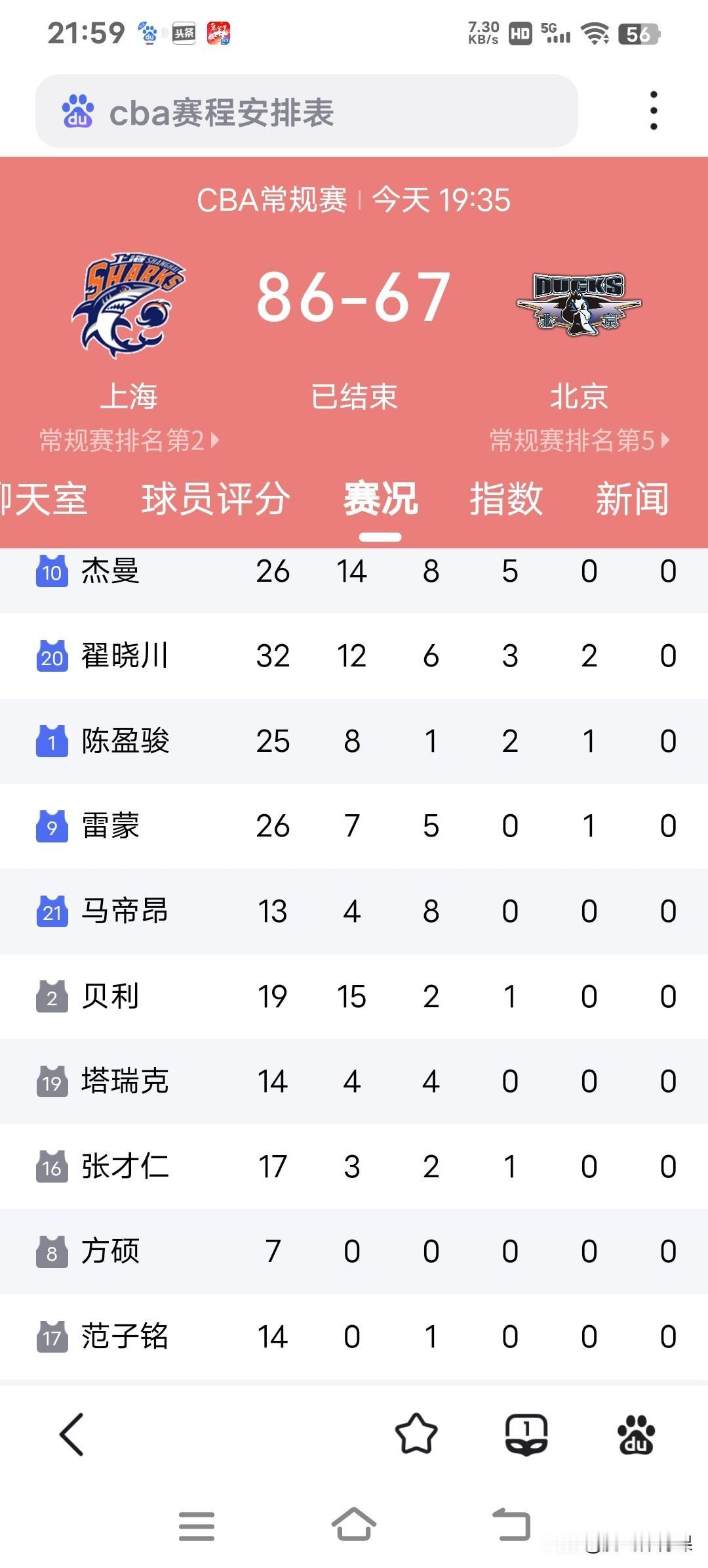上海队是冠军级别的阵容配置? CBA常规赛第十七轮,北京客场67:86惨败上海