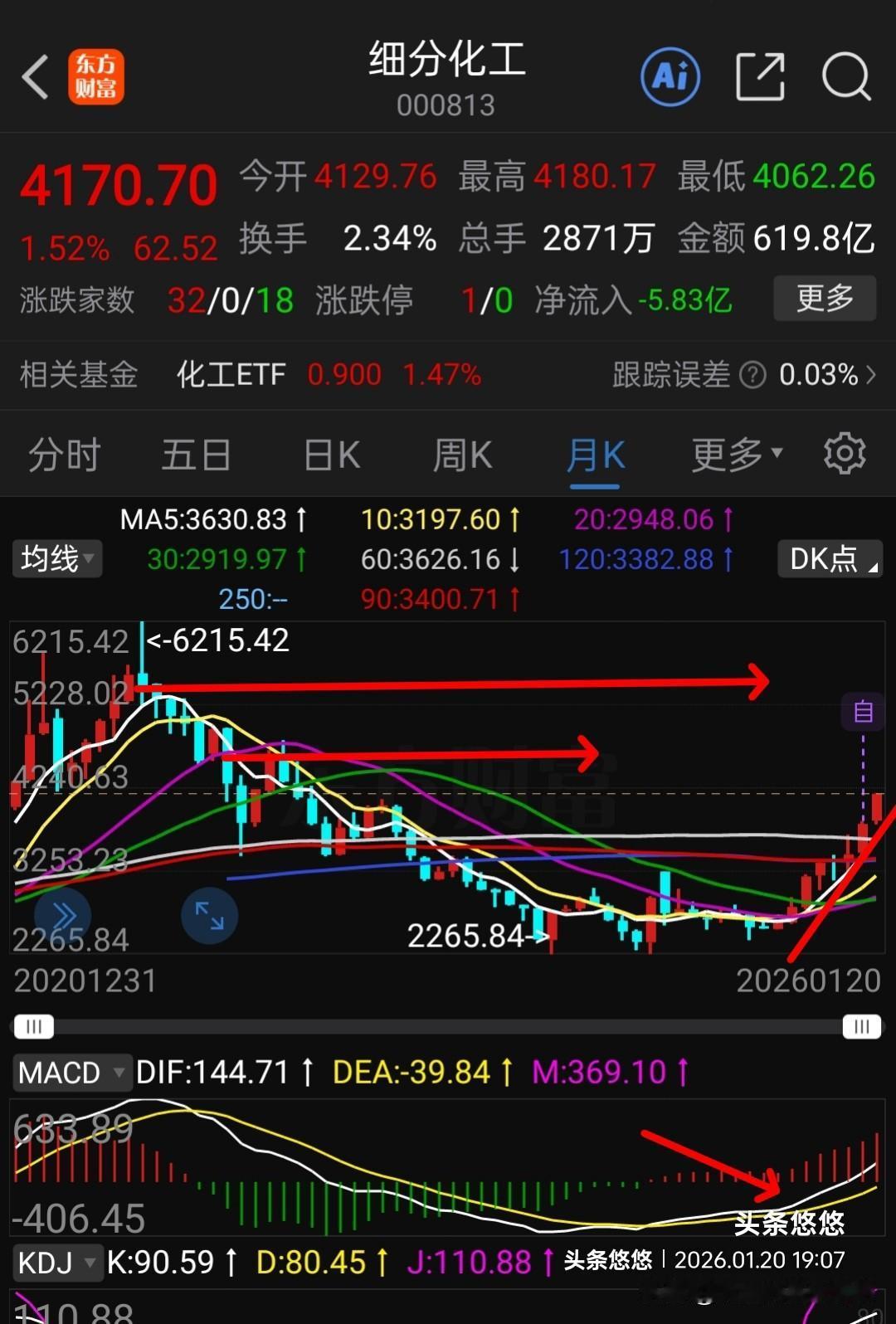 这个板块在偷偷上涨,不可忽视它。在大家的目光都在盯着卫星通信,Ai应用及人形机器人,半导体芯片等大科技板块时,它却稳步上行,不断创出新高,目前上涨劲头不减。 下图是细分化工日线、周线、月线走势,日线一直运行在一个上升通道中,底部逐步抬高,慢就是快。 周线及月线趋势向上运行,前期高点一个个被突破,从大趋势来看,它还处于相对低位,反弹空间还比较大。细分化工,是工业生产不可缺少的原材料,是社会生产生活不可缺少的产品,需求比较大,公司业绩靓丽,喜欢它的可适当低吸布局,或者开启定投。 以上观点仅供参考不构成投资依据,点赞转发关注投资理财不迷路。