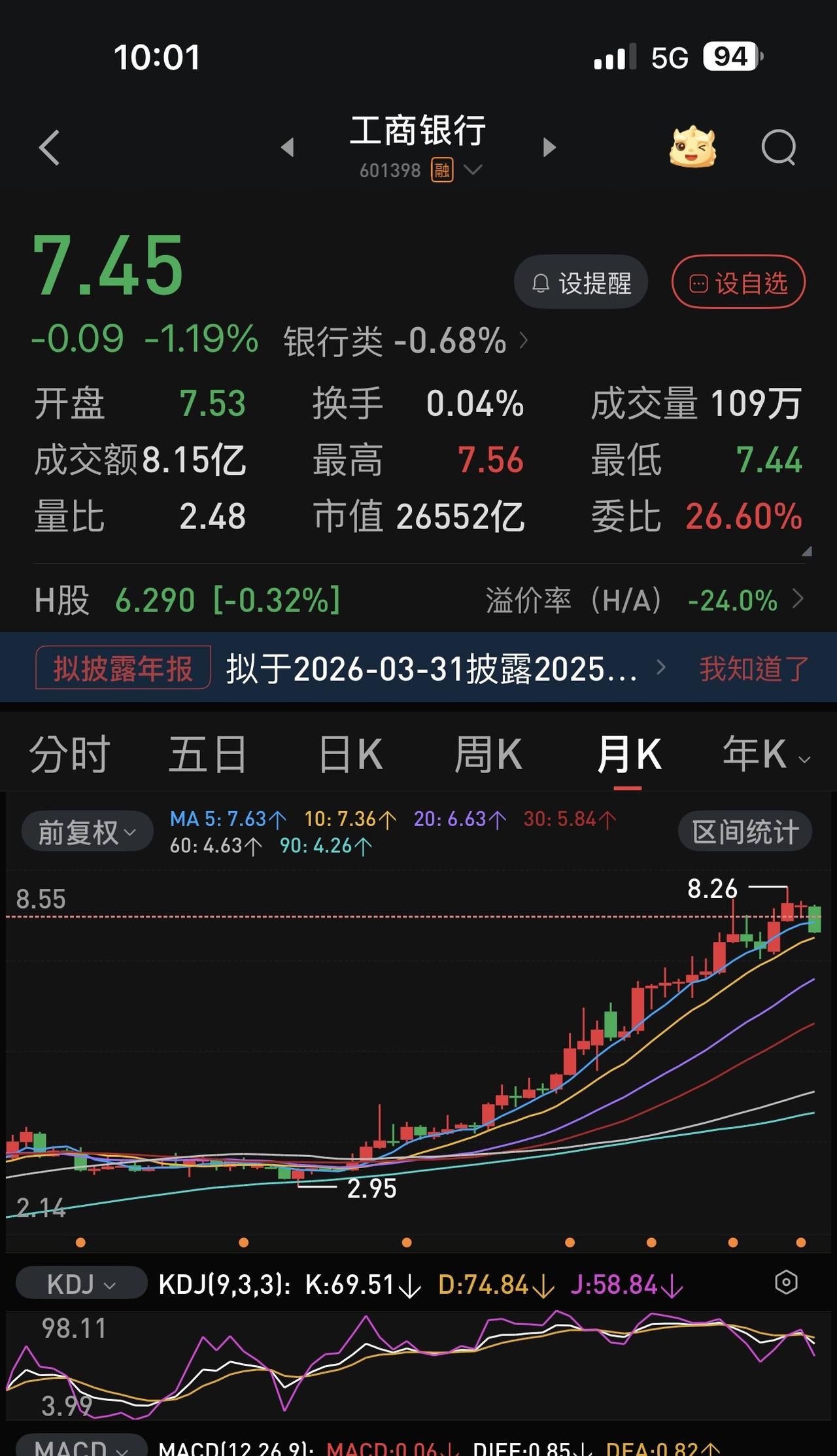 再别被股息率忽悠了。 买超级大盘股绝不能只看日线或周线,必须看月线。 两、三万亿的盘子,趋势一旦形成,不可能在三、五天,一、两周时间能改变。 如果看不清四大行,那就看看中国移动,一年多了,它的虽然整体跌幅也就20 %左右,但是磨人指数让人崩溃。 四大行的任务已经在2021—2025年基本完成了,未来一两年,它们只是工具。