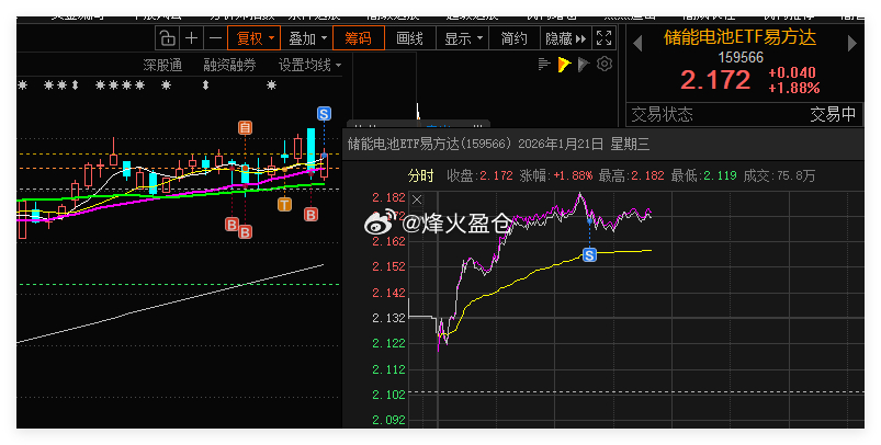 储能电池ETF易方达 手动交易一笔,通过日内做T或波段操作ETF,抓取波动差价,持续平滑持仓成本。分享此思路,愿为关注ETF的朋友带来启发。基金ETF今日看盘金融