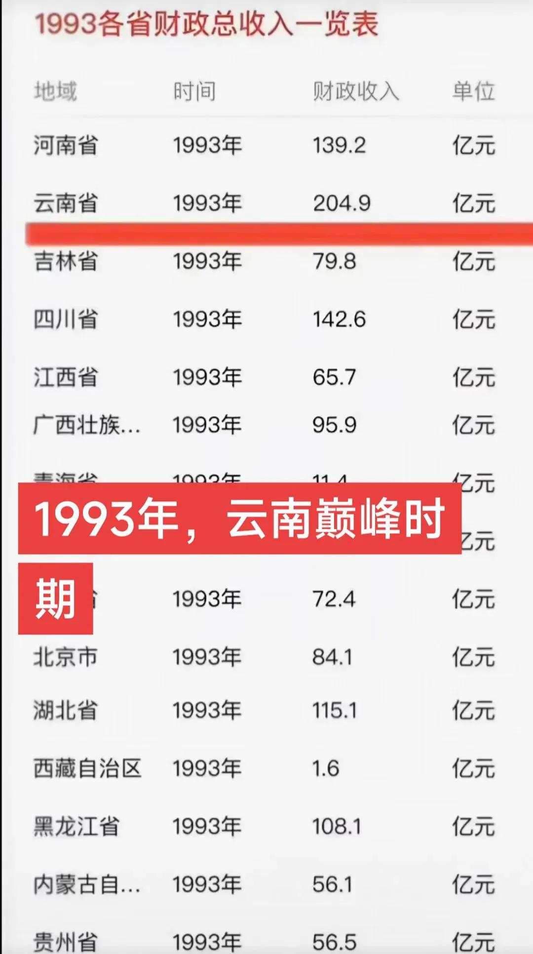 三十年前的云南是蛮厉害的!1993年前后是云南改革开放以来的滇(巅峰时期)!
