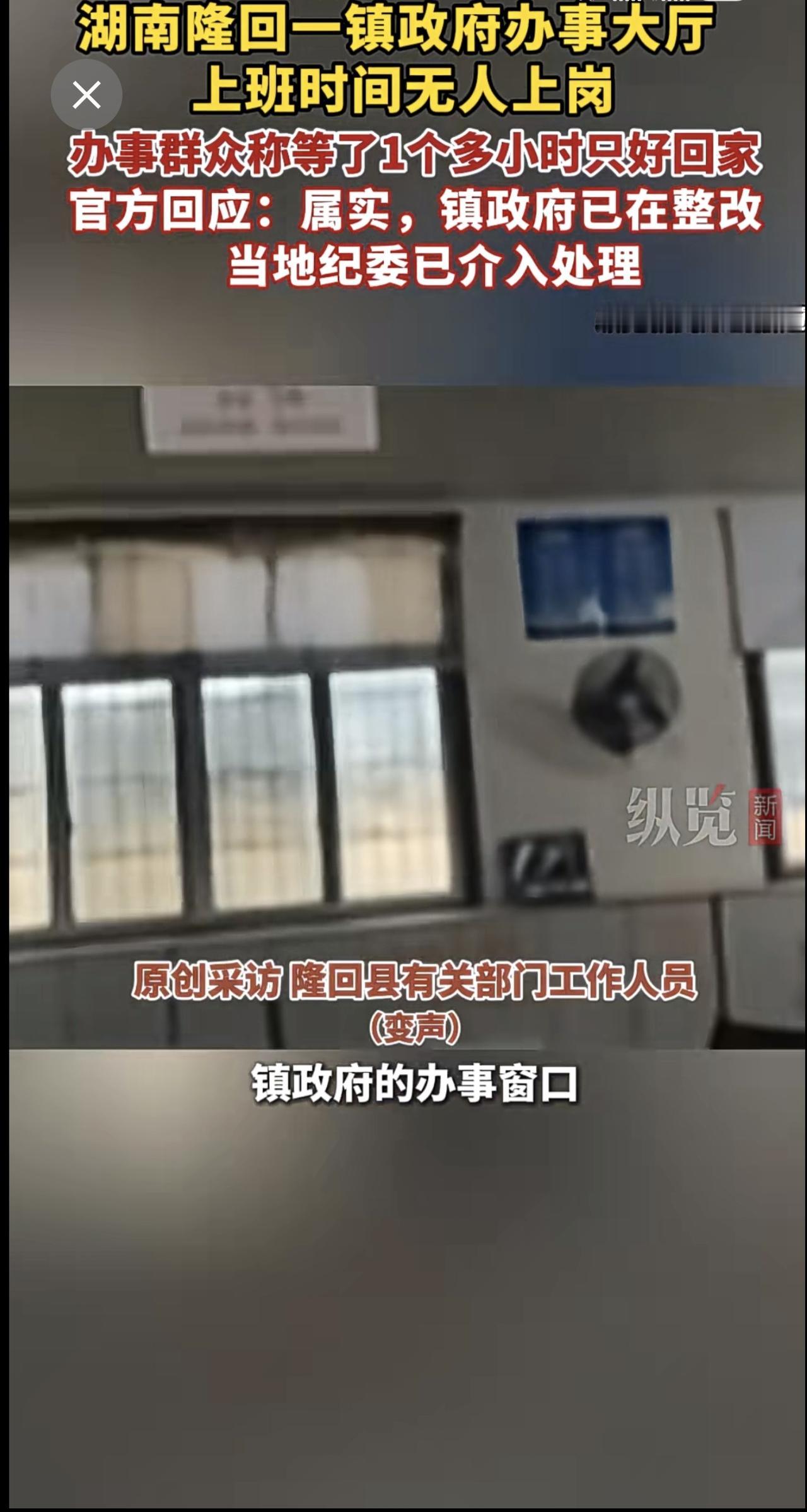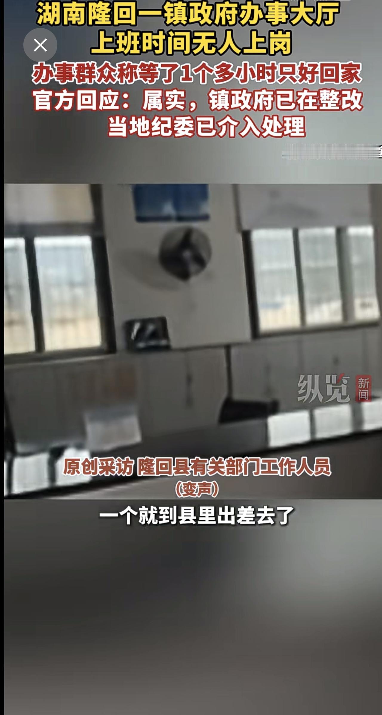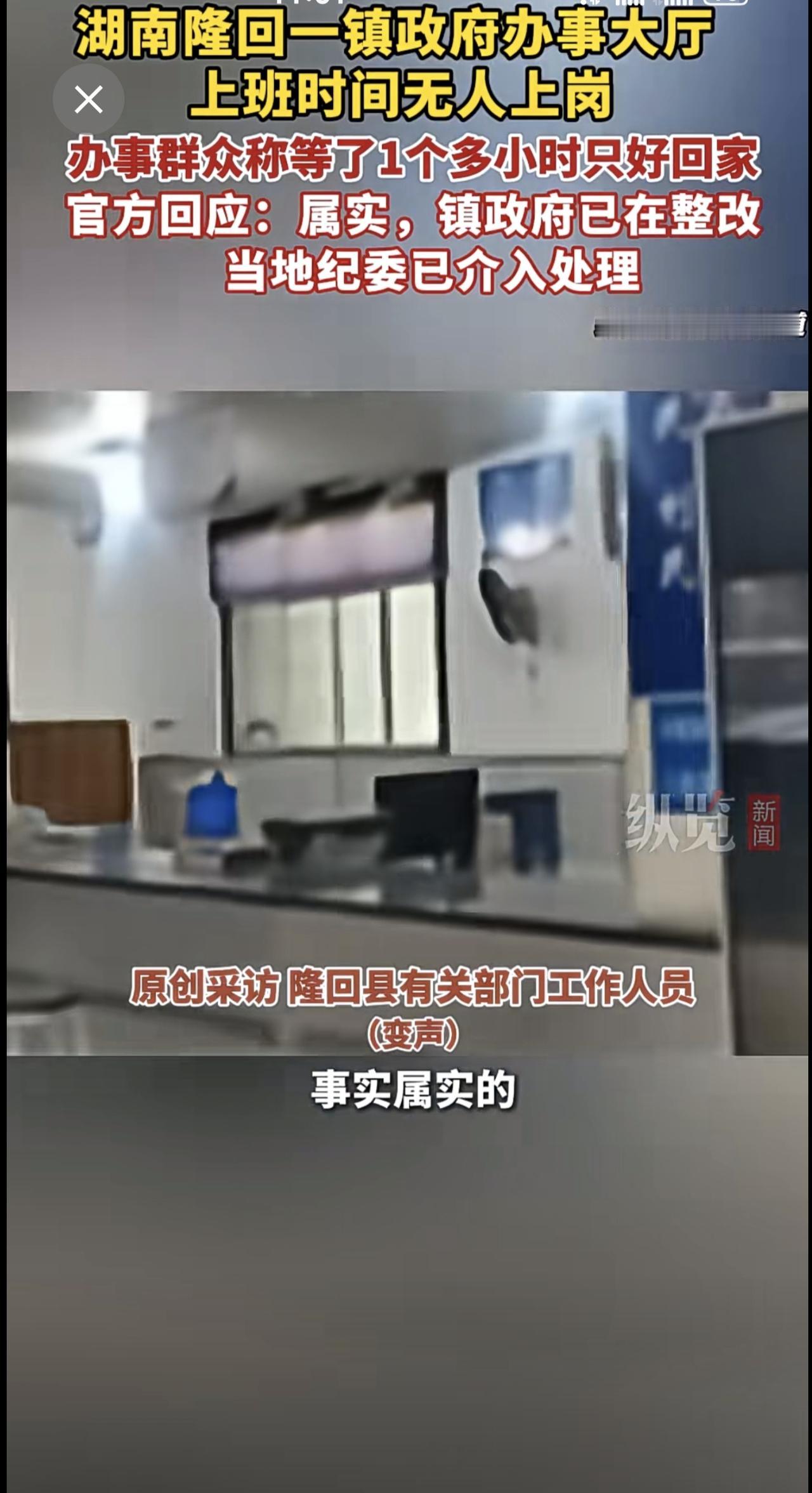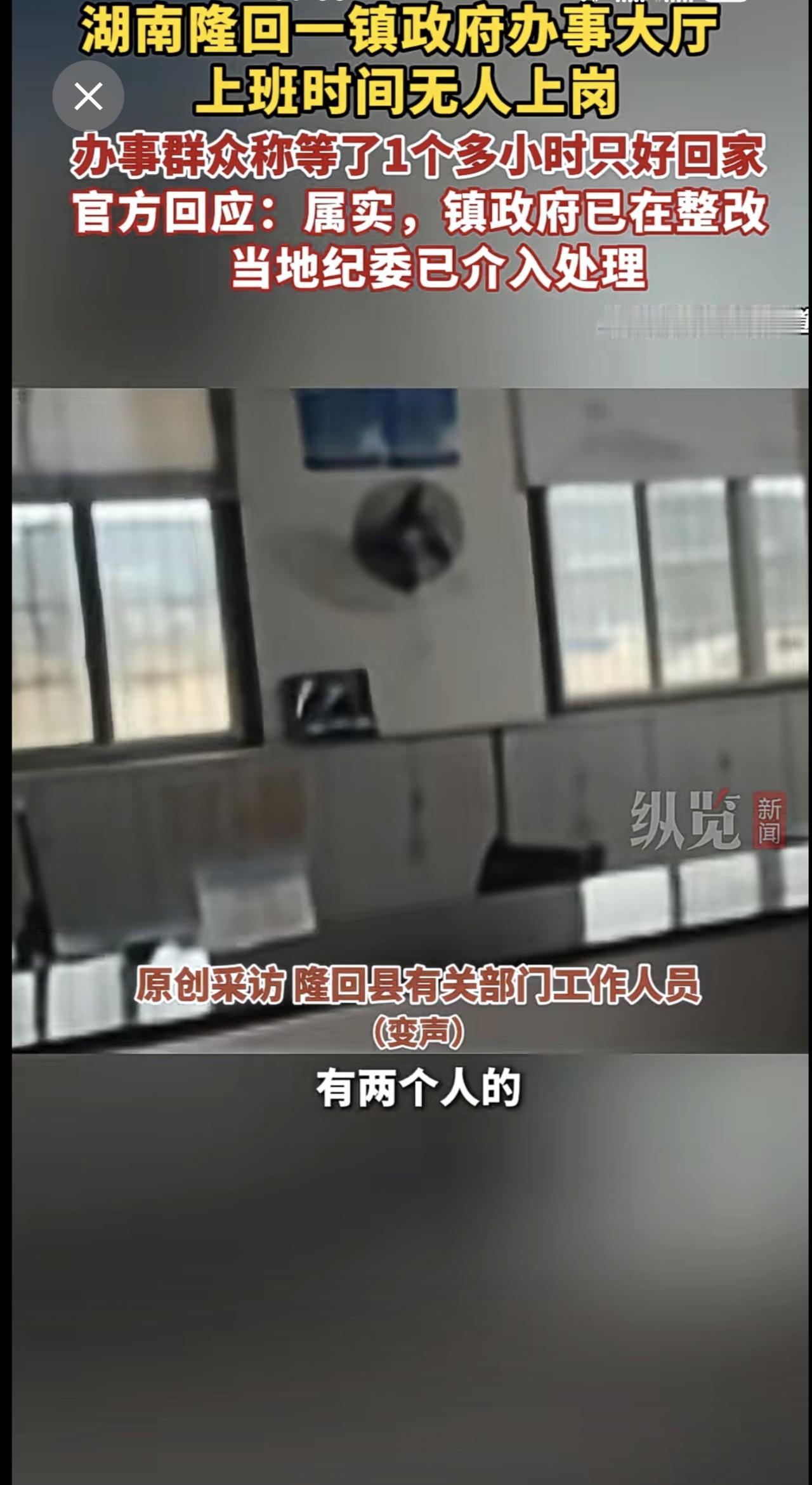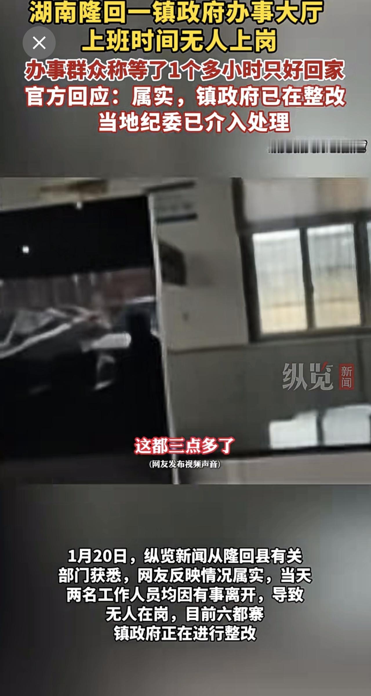 纵览热点|湖南隆回一镇政府办事大厅上班时间无人上岗,办事群众跑空?官方回应:情况属实,镇政府已在整改(制作/张李昊 见习记者朱荣琛 记者任利)