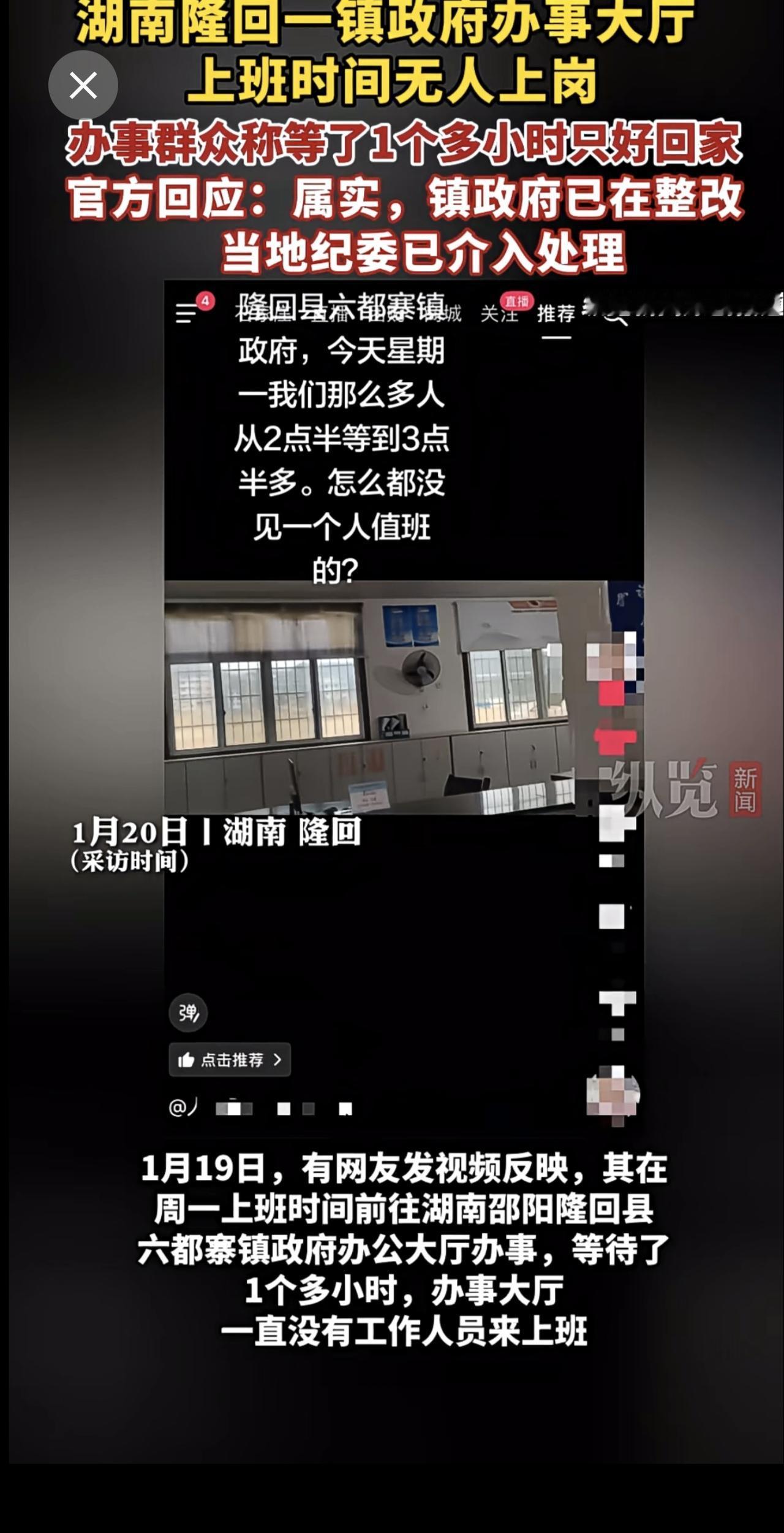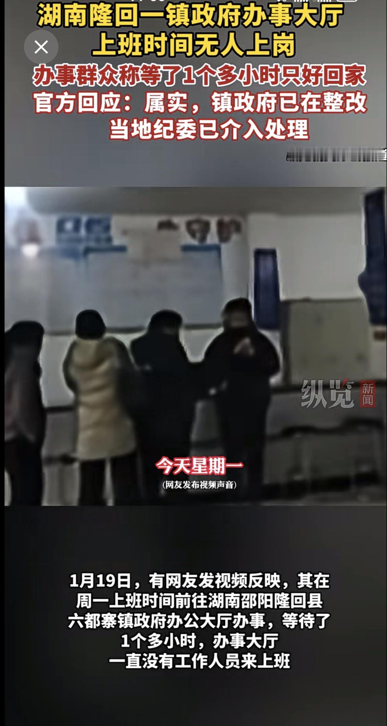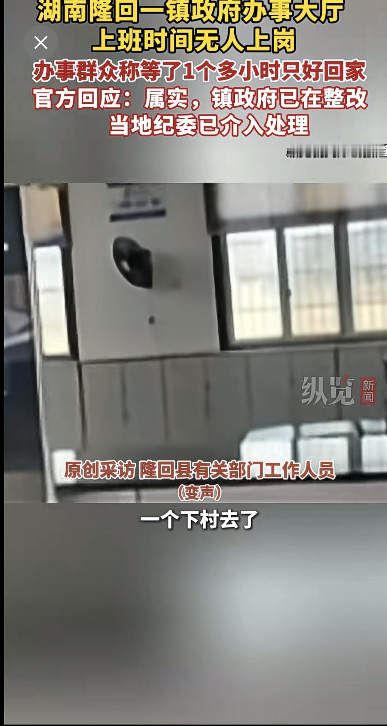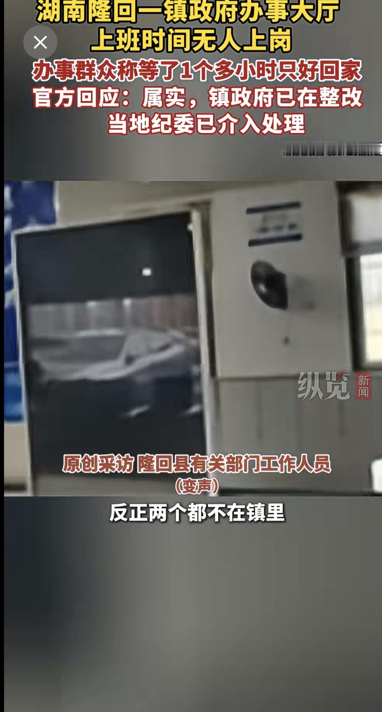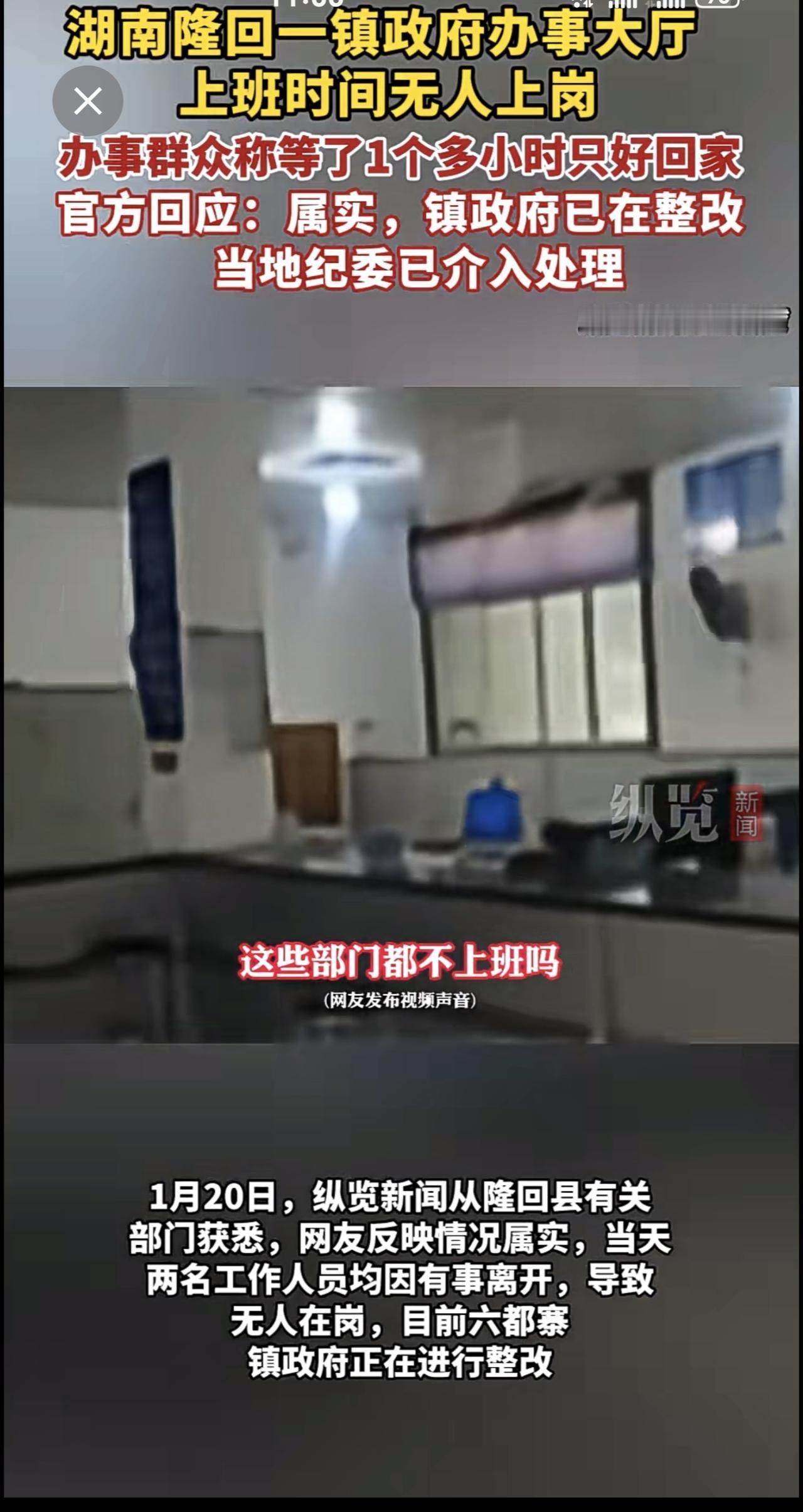 纵览热点|湖南隆回一镇政府办事大厅上班时间无人上岗,办事群众跑空?官方回应:情况属实,镇政府已在整改(制作/张李昊 见习记者朱荣琛 记者任利)