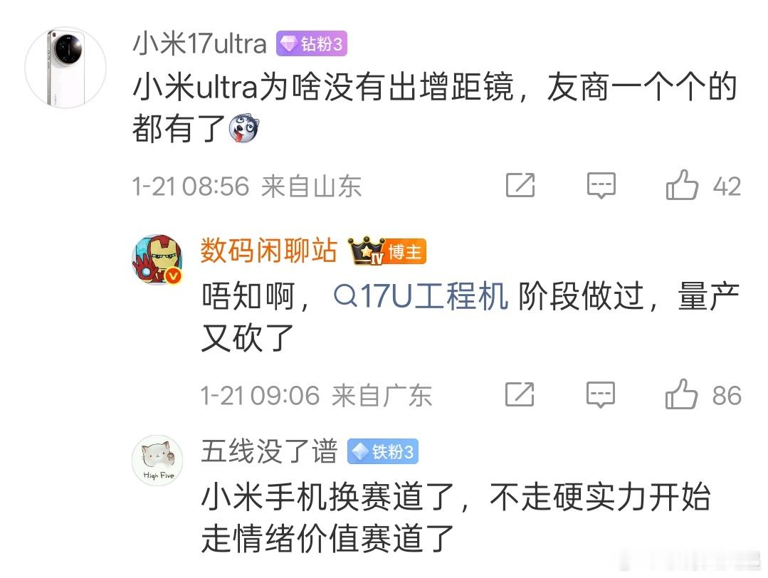 小米17 Ultra工程阶段做过增距镜,量产又砍掉了,米粉们还想要增距镜吗,这一代友商超大杯应该都是有的