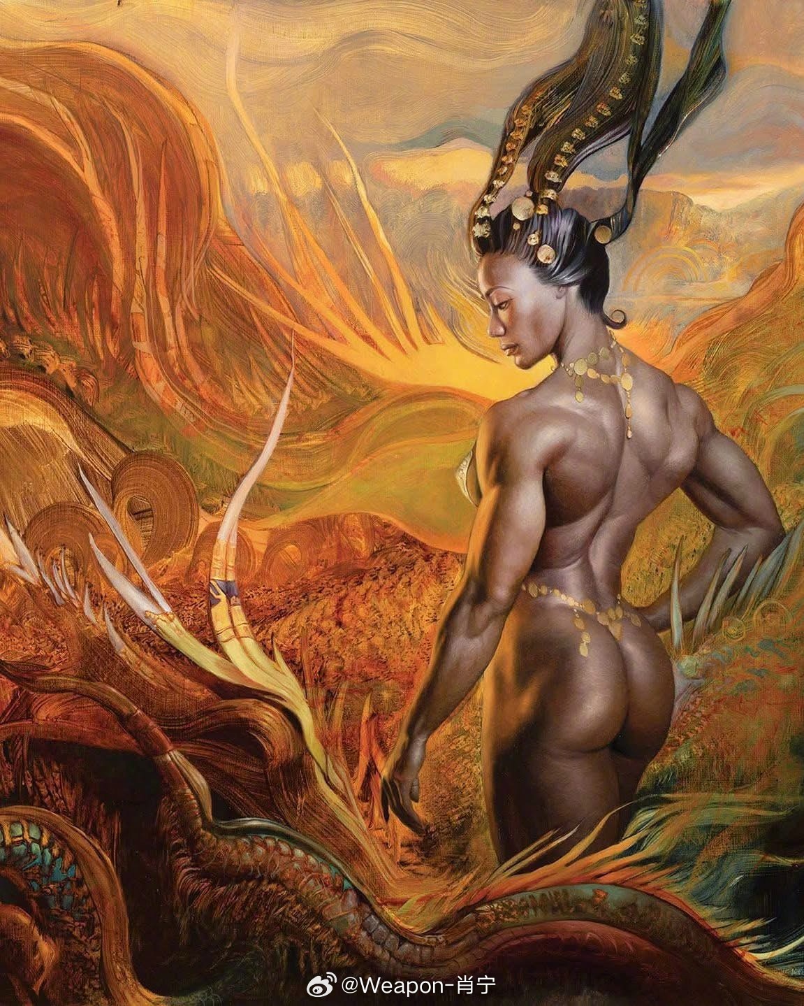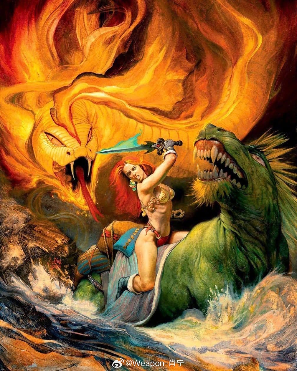 兵器影像 美国插画家朱莉·贝尔的作品,他是一位美国艺术家、插画家、摄影师、健美运动员和野生动物画家。贝尔也是一位奇幻艺术家,是英雄奇幻和奇幻现实主义流派的代表人物。她曾获得切斯利奖,并担任《命运之龙》系列的设计者。她还在艺术复兴中心国际沙龙展上荣获一等奖,并被授予“ARC当代大师”称号。